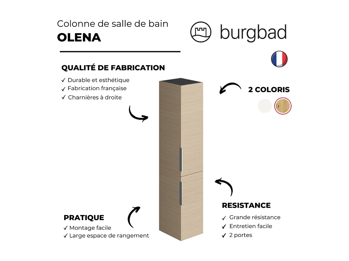 Colonne de salle de bain BURGBAD Olena 2 portes chêne clair
