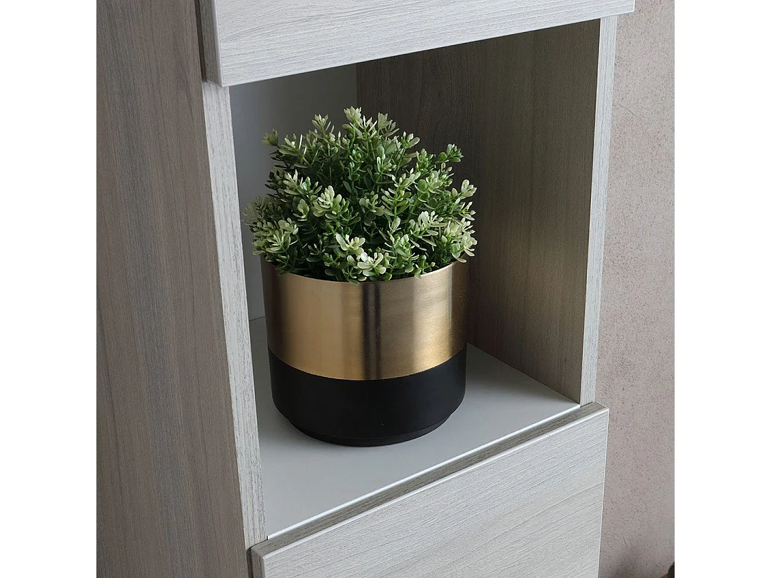 Colonne De Salle De Bain En Bois Gris, Portes, Tiroir Et Compartiment Ouvert | Rimini