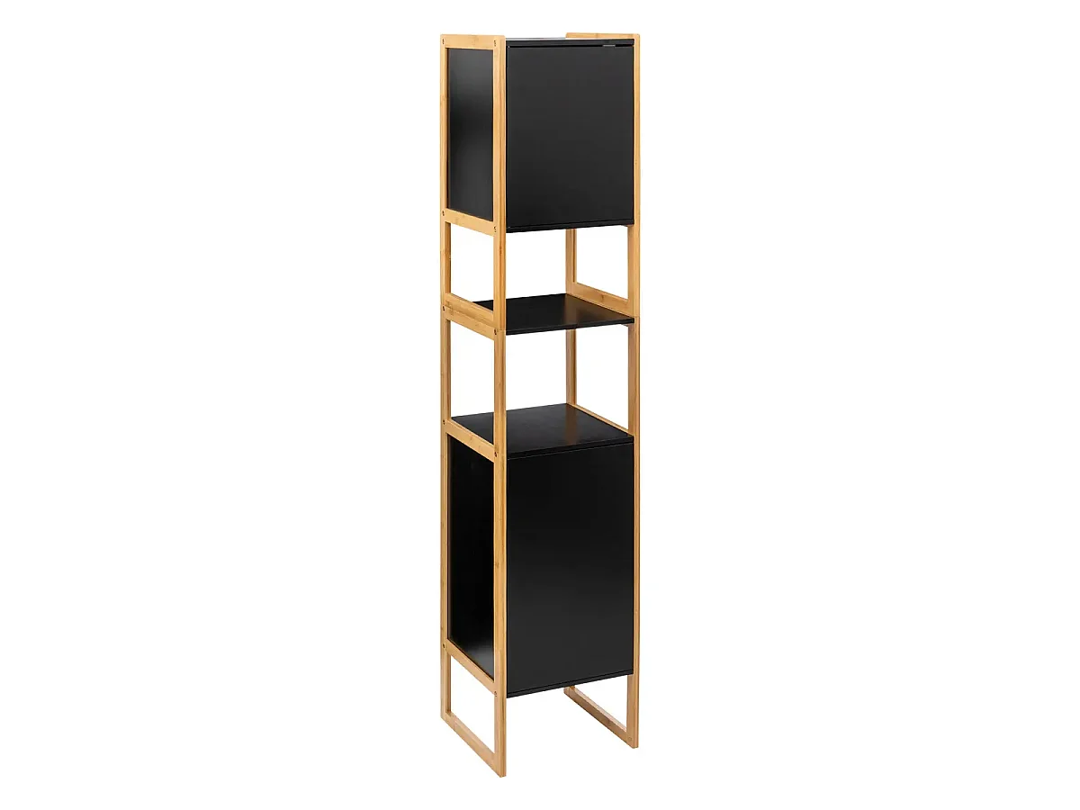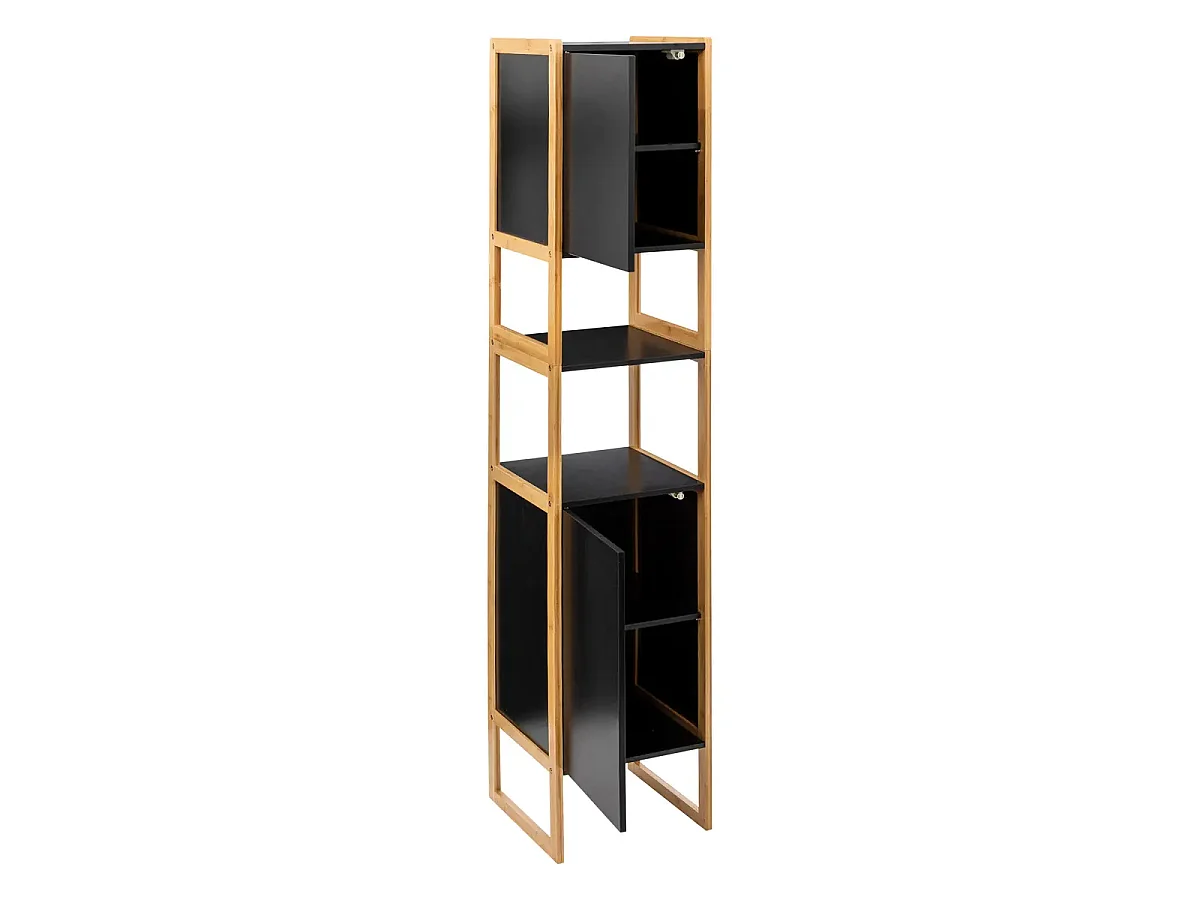 Meuble de rangement Colonne en Bambou et Bois Noir 2 Portes H 170 cm