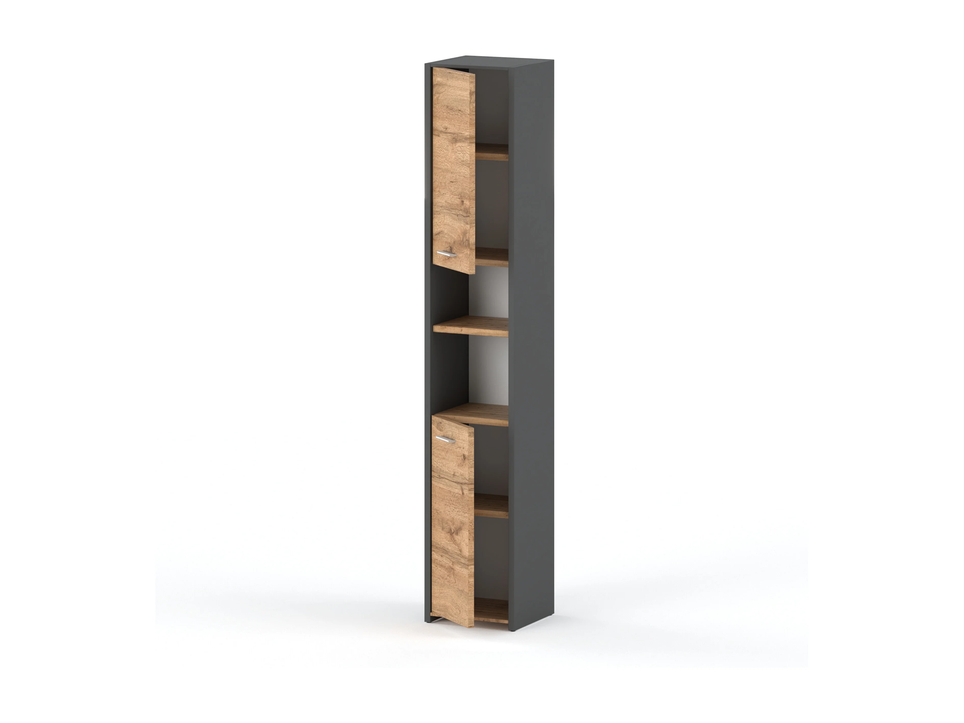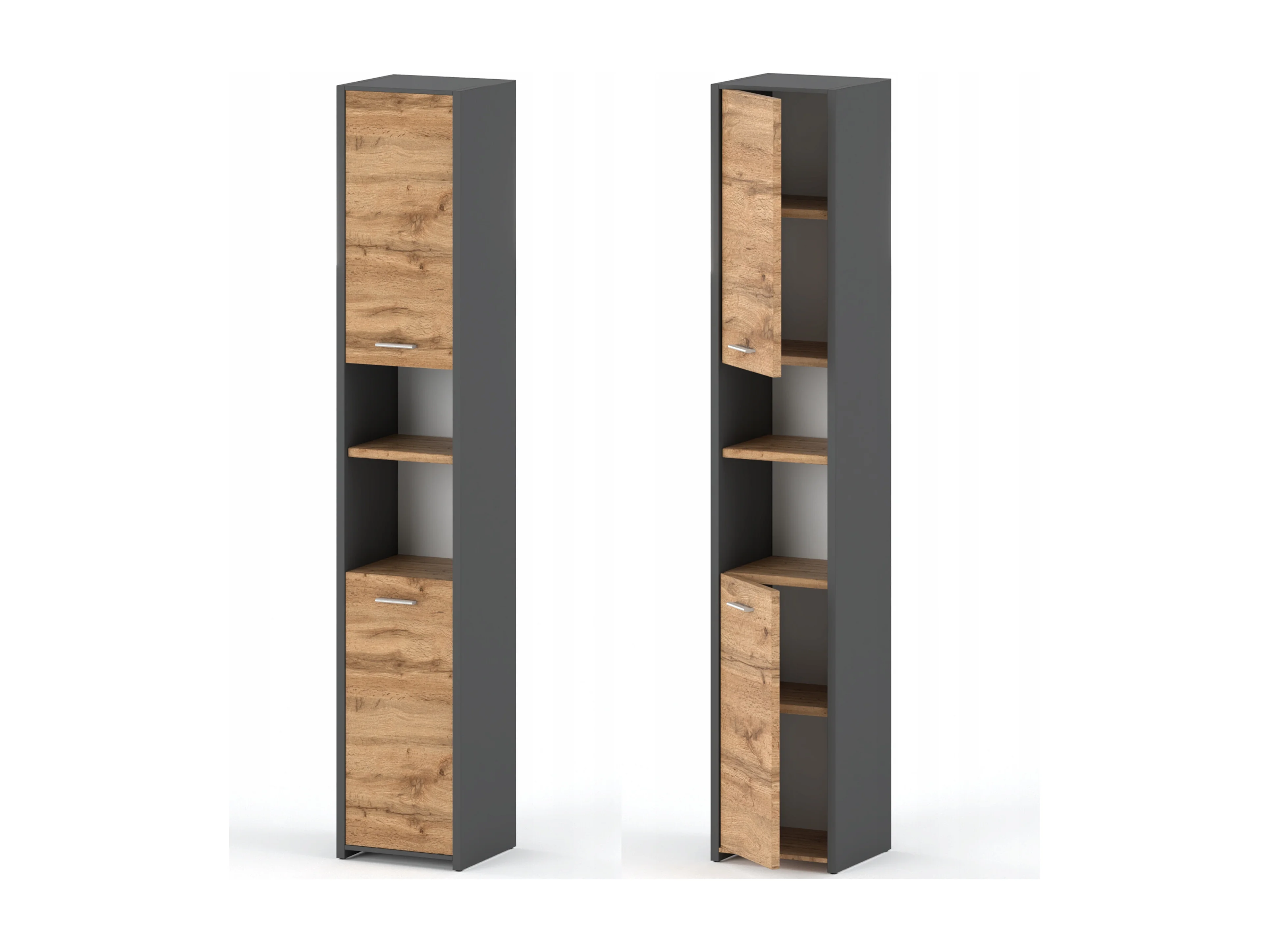 Colonne salle de bains AKORD FIN Blanche 30 cm 2 portes façade Gris Graphite 5 étagères 30x30x140 cm