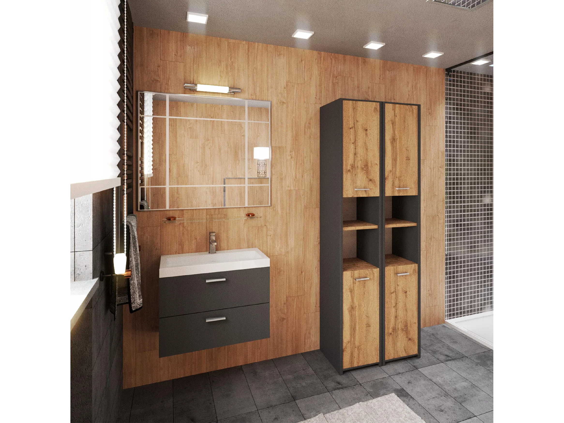 Colonne de salle de bain Gris +Chêne Wotan 30x30x165cm – armoire de salle de bain sur pied, meuble de rangement