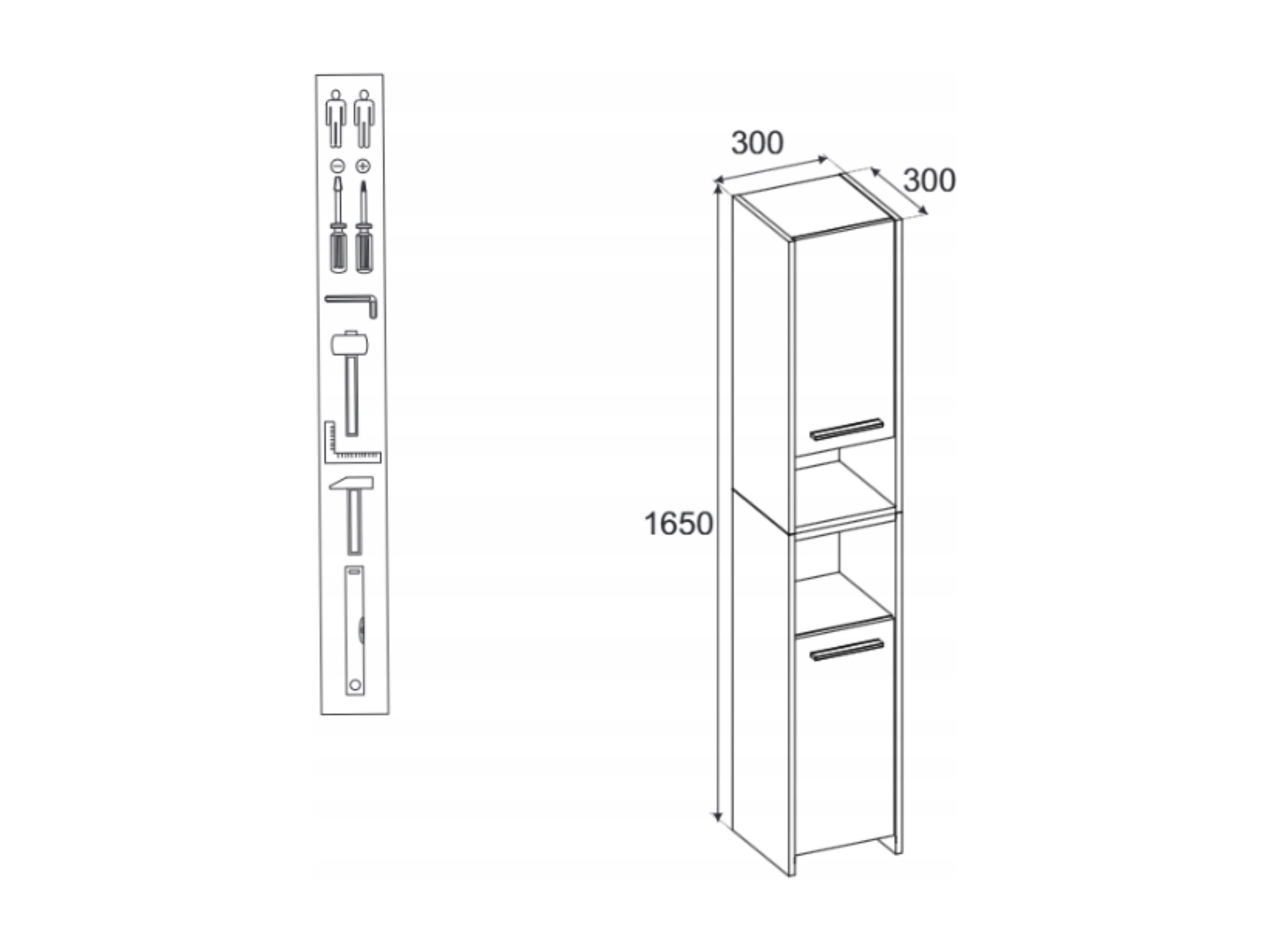 Colonne salle de bains AKORD FIN Blanche 30 cm 2 portes 1 tiroir façade Gris Graphite 5 étagères 30x30x140 cm