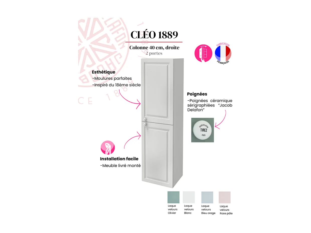 Colonne de salle de bain JACOB DELAFON Cléo 1889 blanc velours version droite