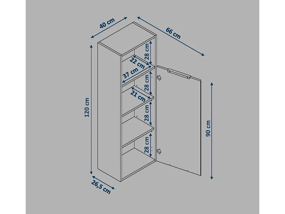 Colonne de salle de bain NIKI 1 porte 120x40x26,5 cm blanc T-BATH