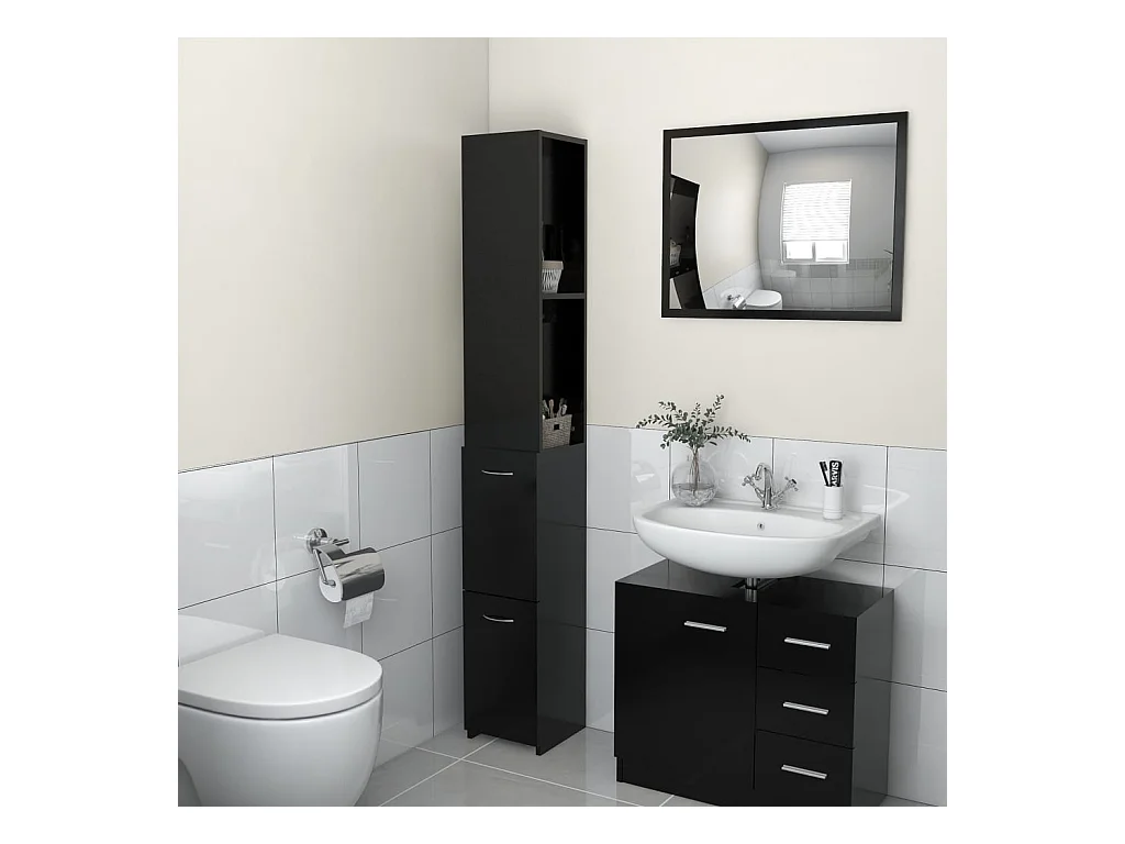 Armoire de salle de bain noir 30x30x100 cm bois d'ingénierie FR59350