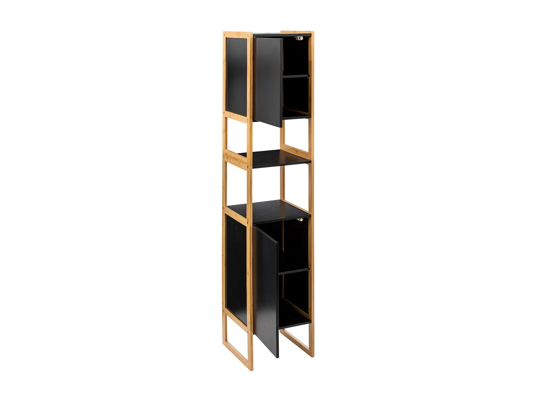 Meuble de rangement Colonne en Bambou et Bois Noir 2 Portes H 170 cm