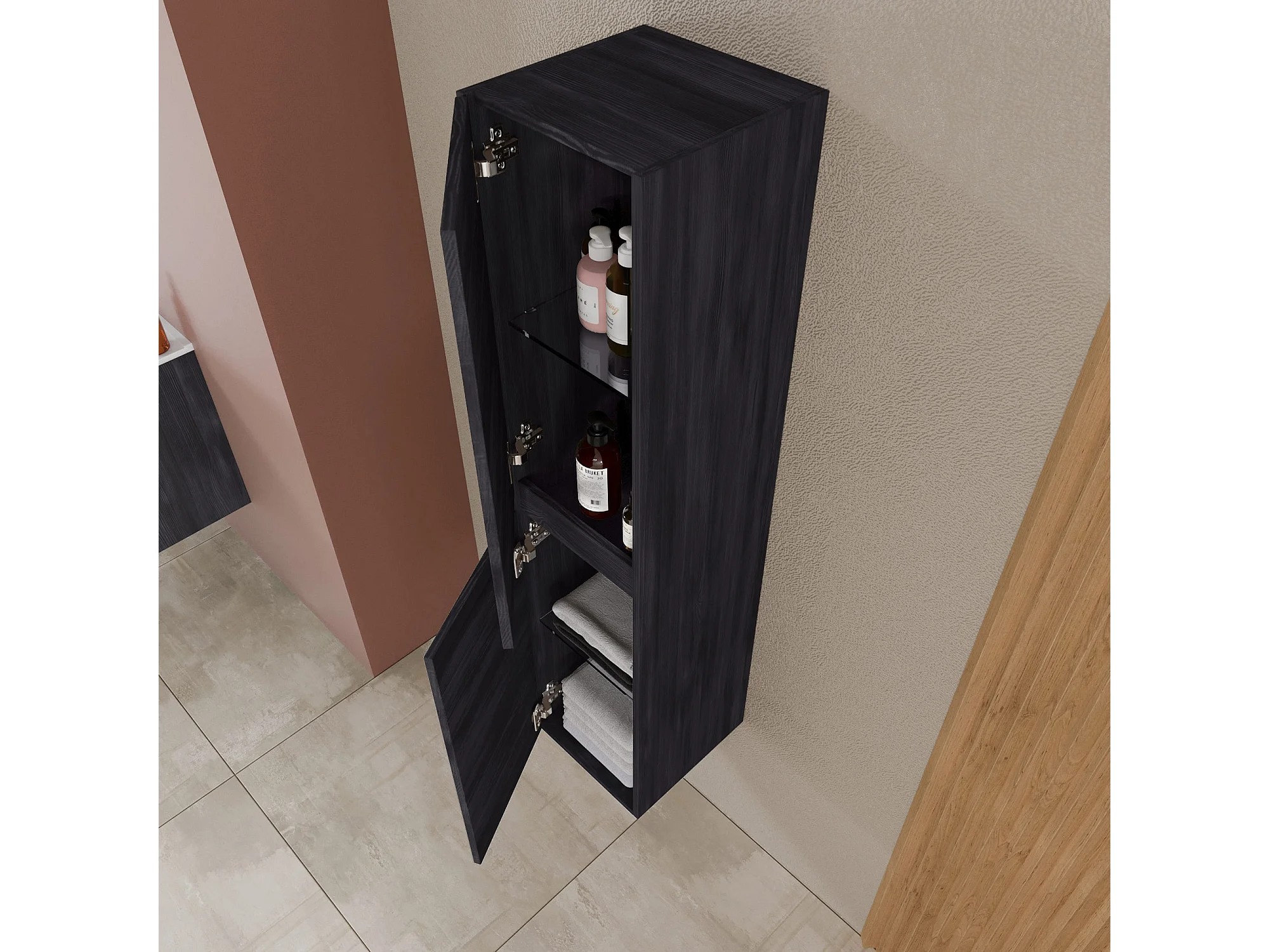 Colonne De Bain Suspendue Avec 2 Portes En Chêne Naturel