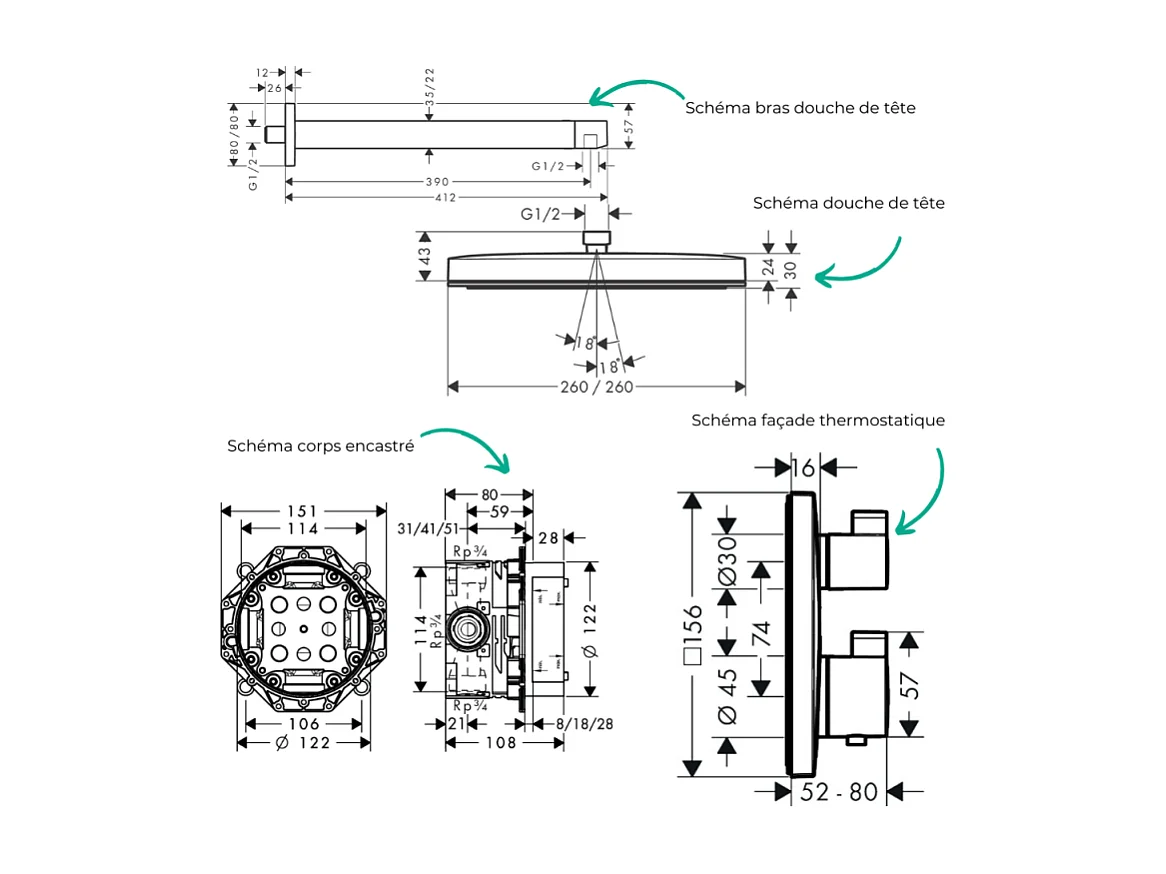 Colonne douche thermostatique HANSGROHE Ecostat Square Douche de tête Pulsify S Flexible Designflex Douchette Pulsify E blanc mat
