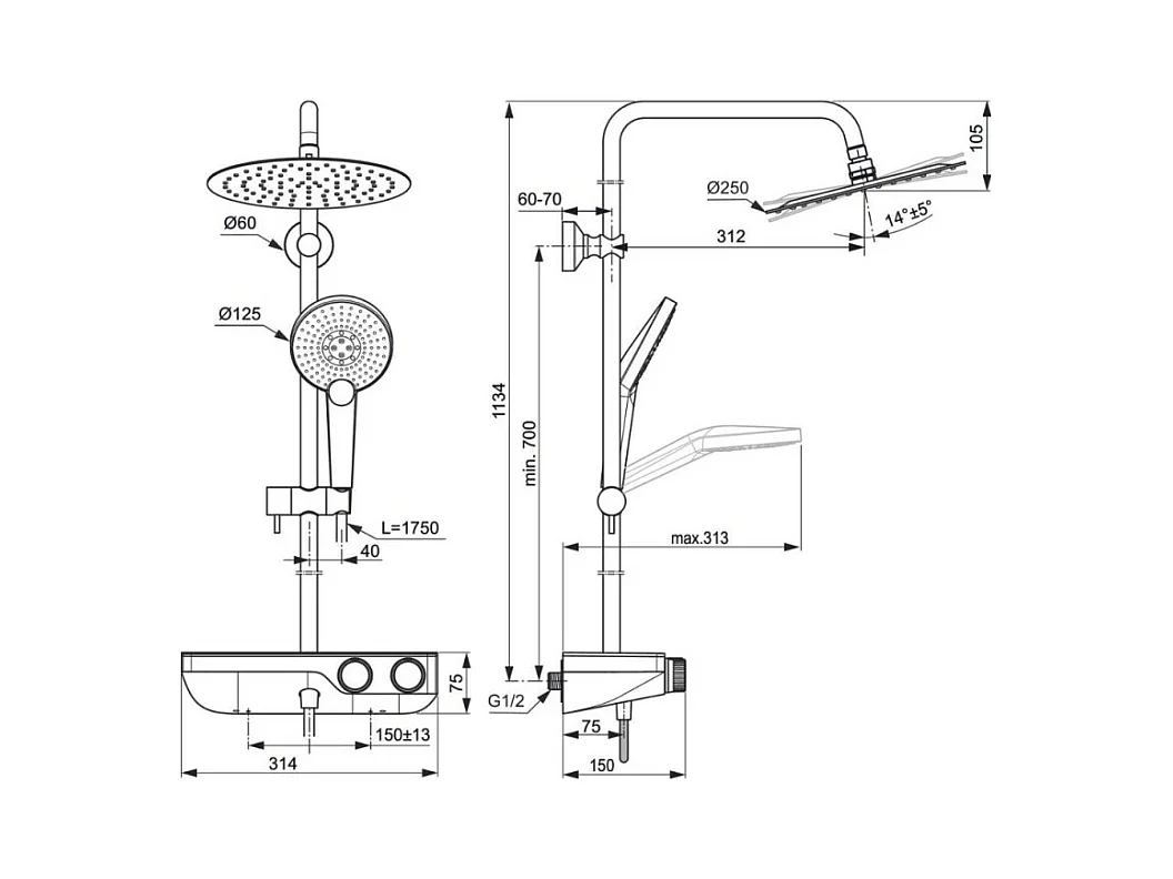 Colonne douche thermostatique IDEAL STANDARD douchette ronde Ceratherm S200 + Nettoyant BRIOCHIN Ecocert