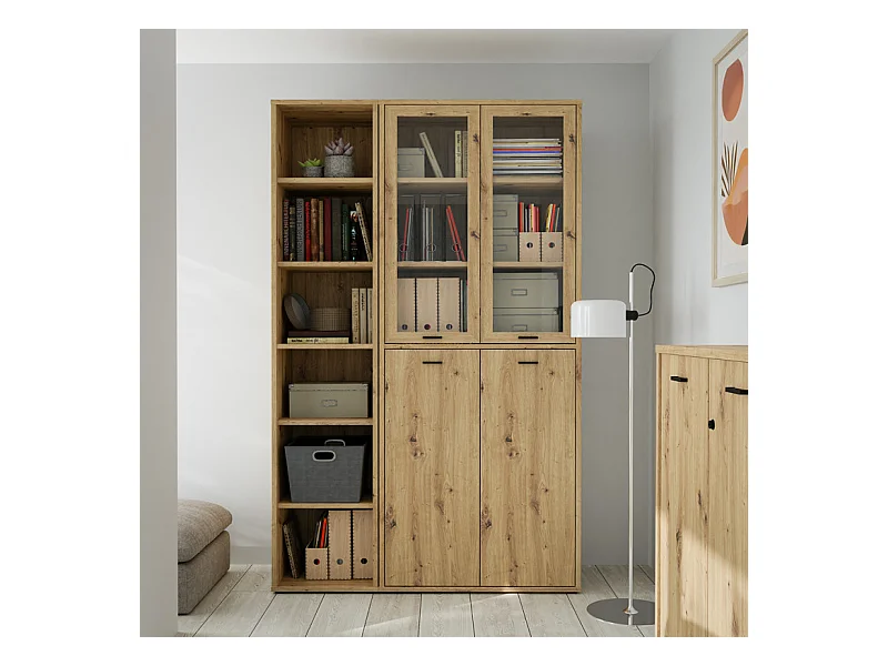 Colonne étagère H. 227 cm 6 cases décor chêne rustique - MANOLO