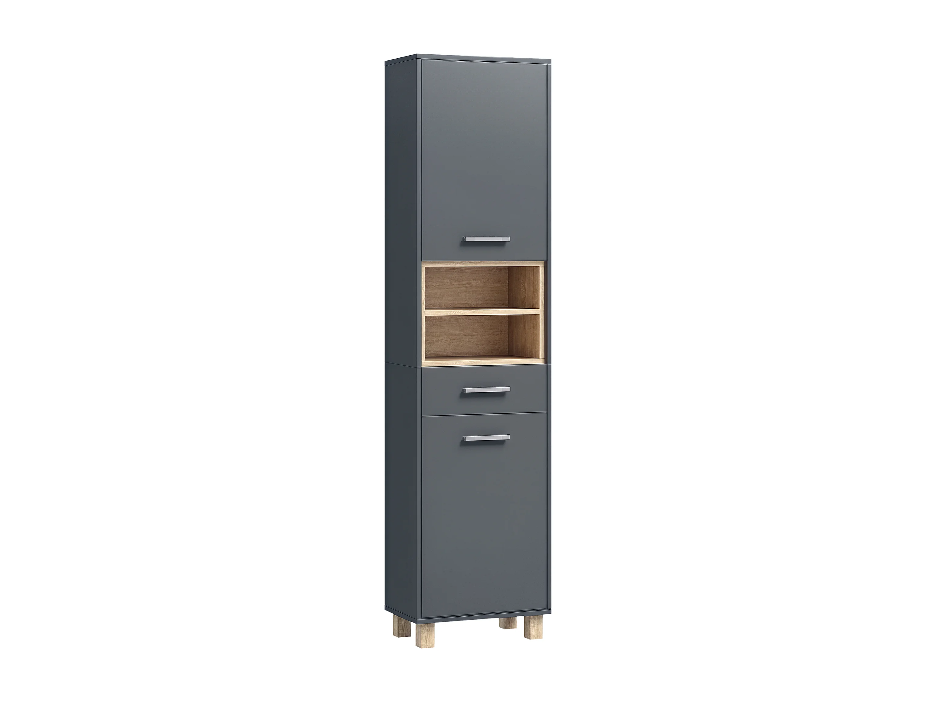 Colonne salle de bain design H.160 cm - 2 portes, 2 niches, tiroir - gris effet bois clair naturel
