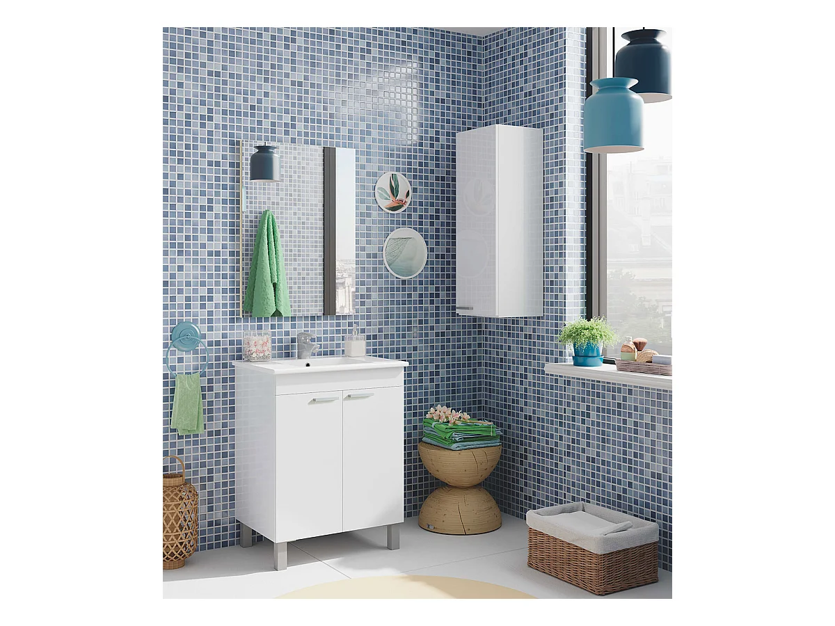 Colonne salle de bain avec 2 portes coloris blanc brillant - 182 x 30 x 25 cm