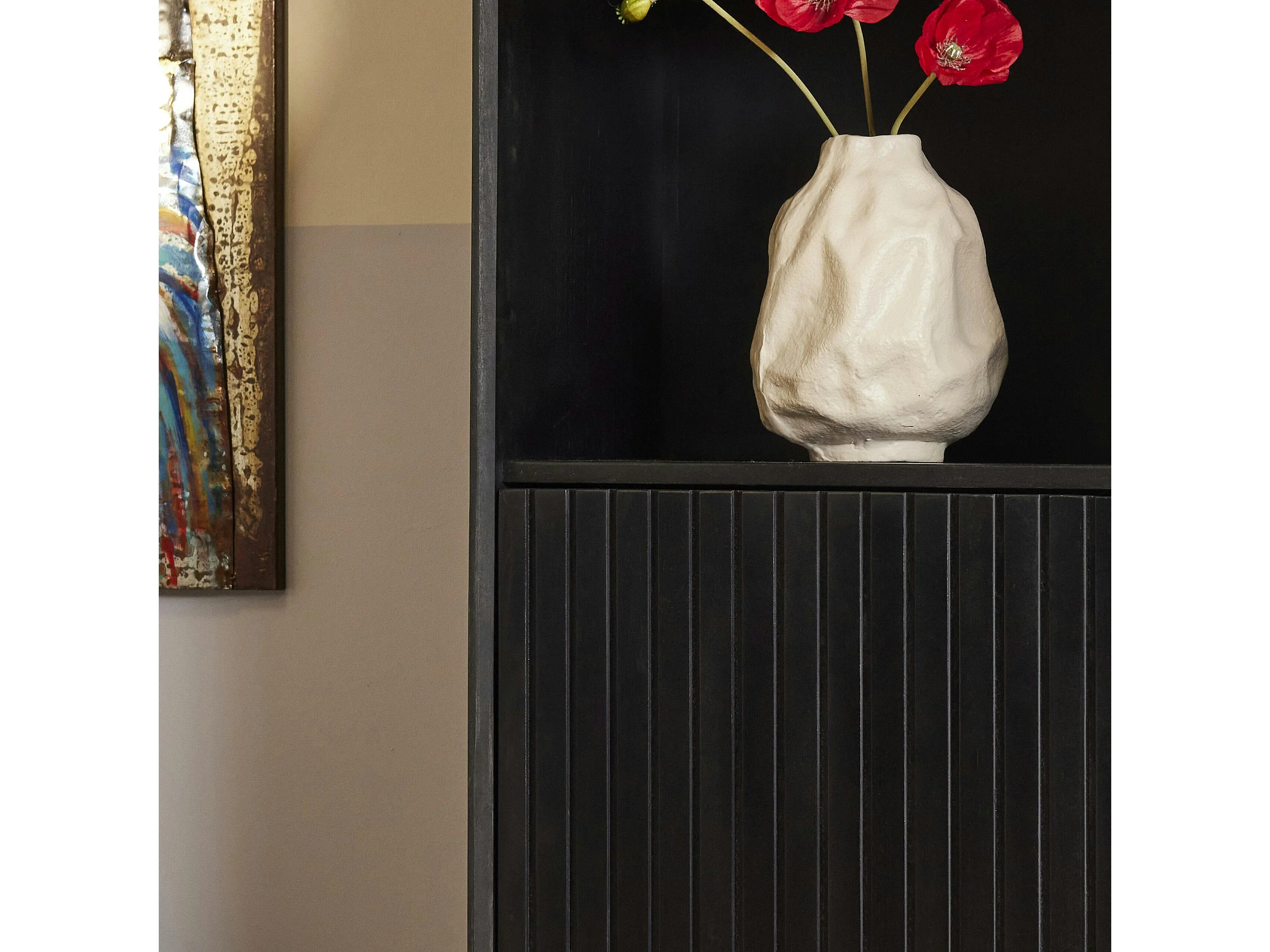 Colonne salon bois noir 1 porte rainurée CORTINA