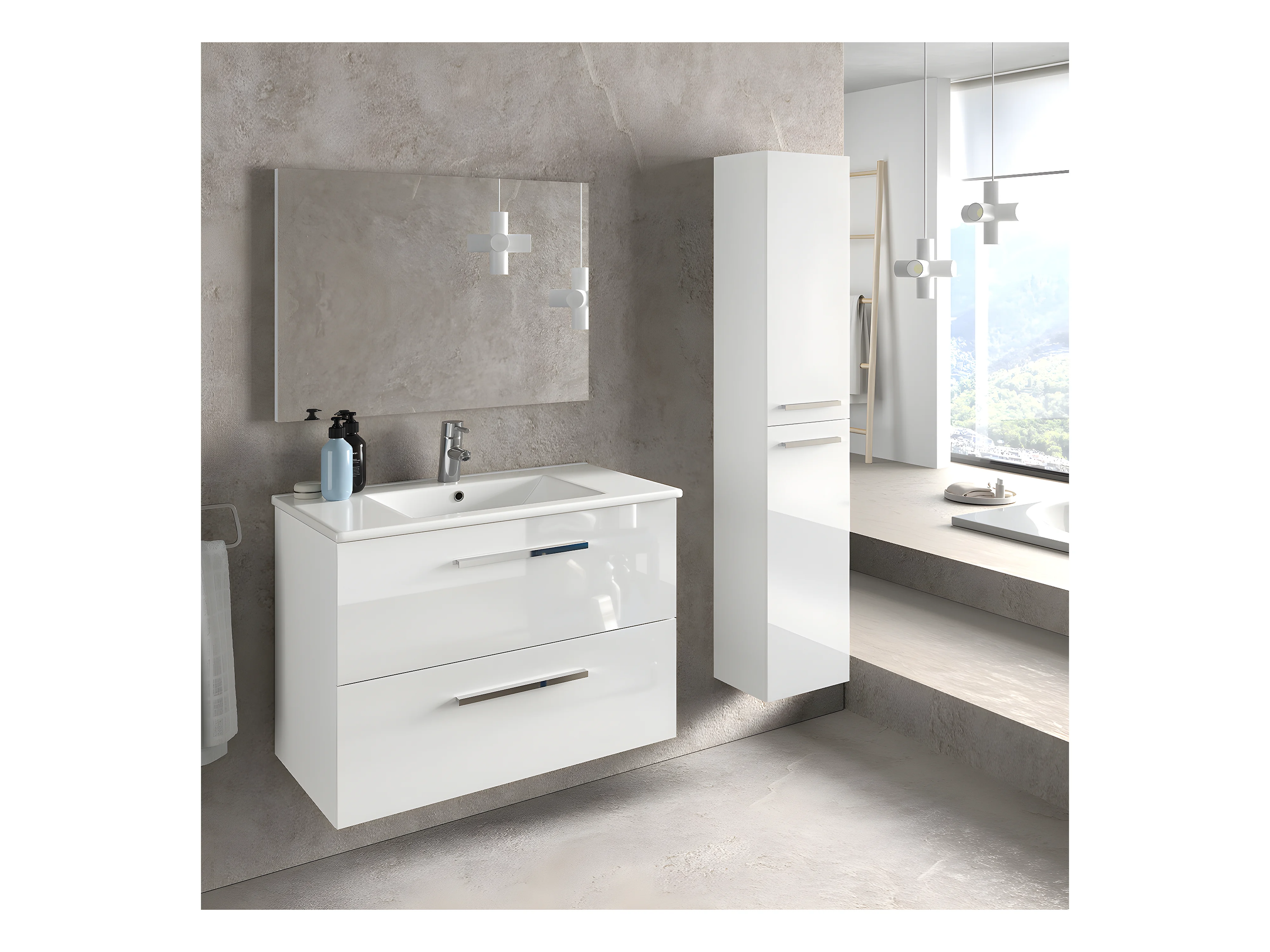 Colonne de salle de bain Dfaropp, Armoire colonne de salle de bain avec 2 portes, Armoire suspendue avec 2 étagères, 30x25h182 cm, Blanc brillant
