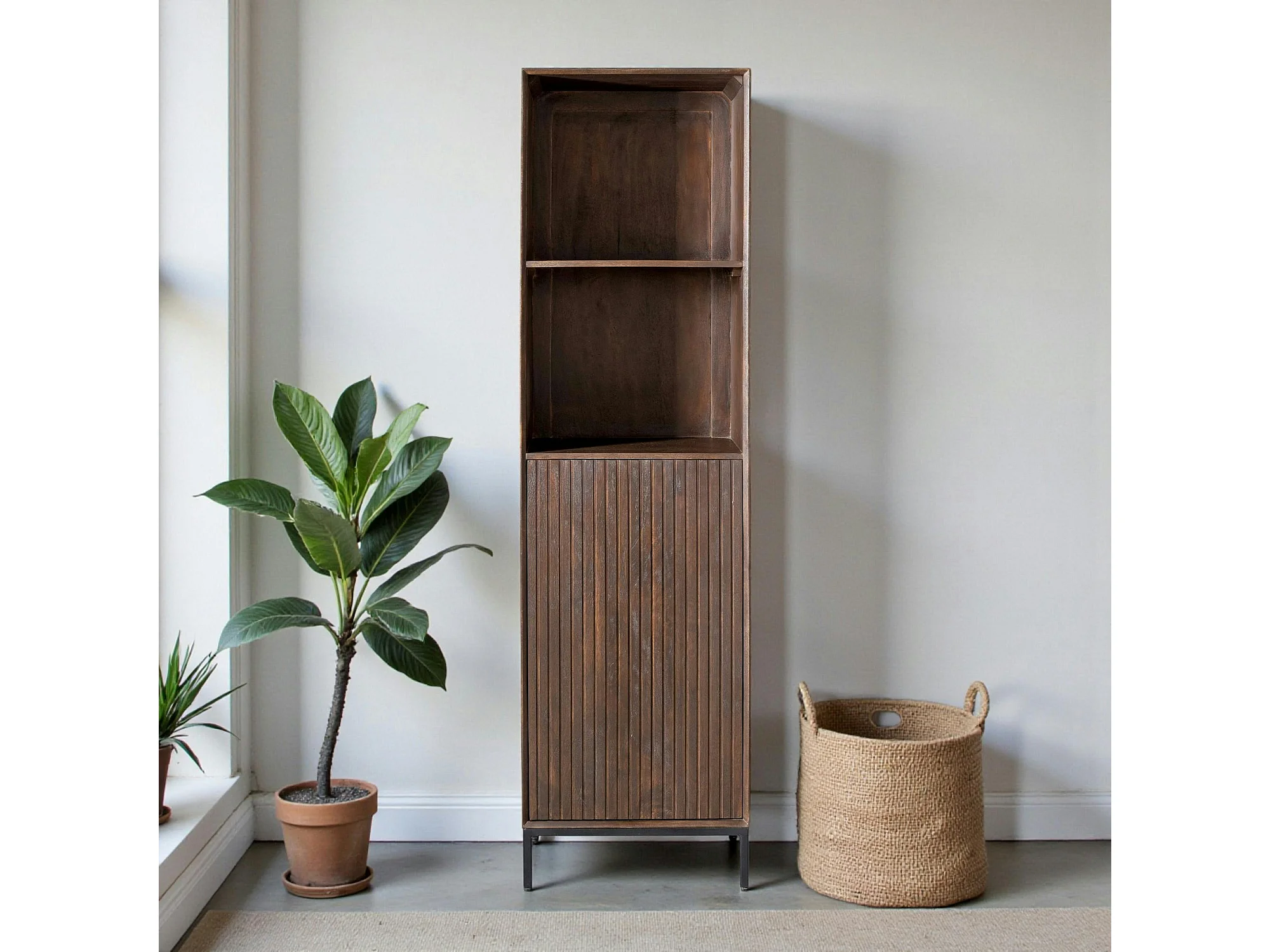 Colonne vintage bois brun 1 porte rainurée CORTINA