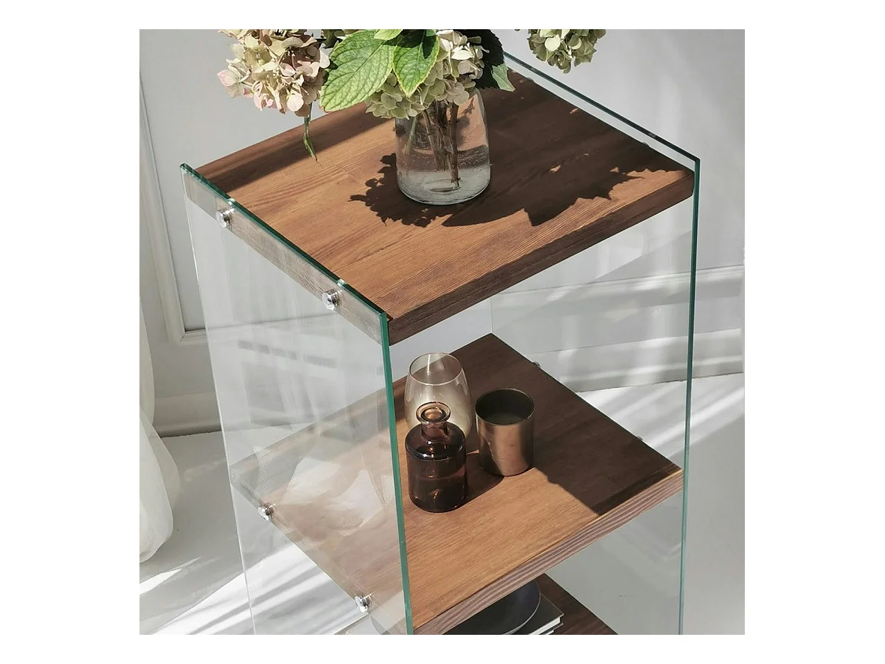 Colonne vitrine design - bois marron, 3 plateaux LHASA