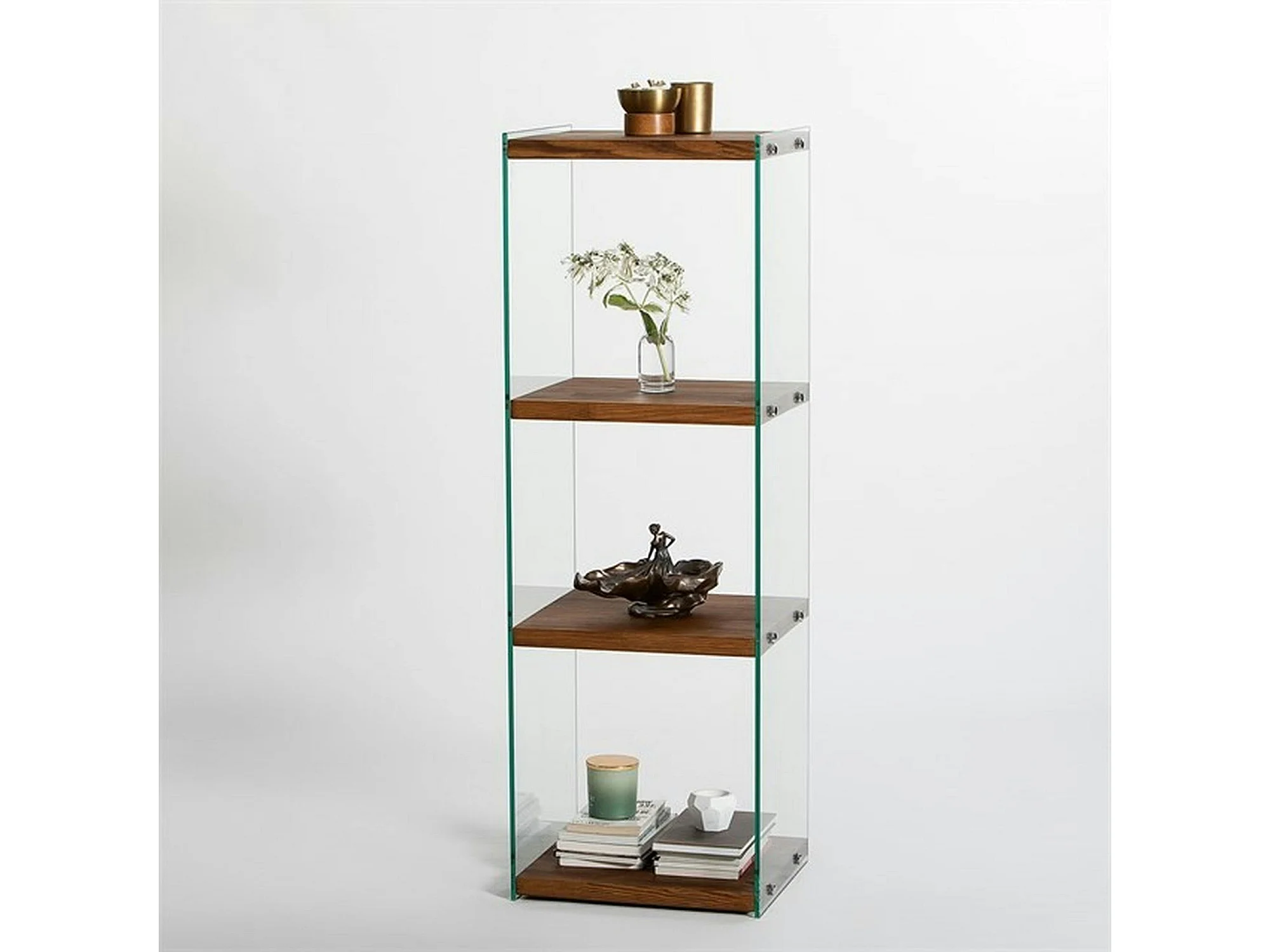 Colonne vitrine design - bois marron, 4 plateaux LHASA