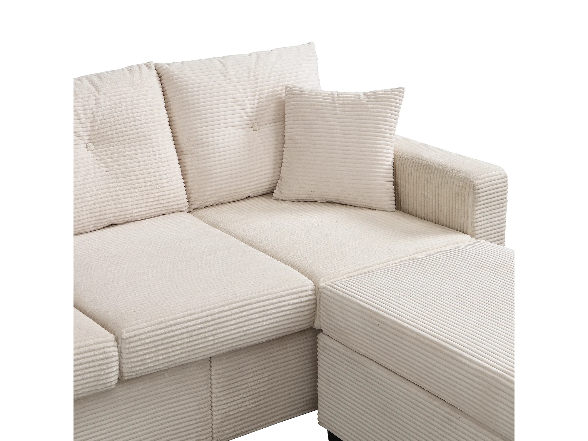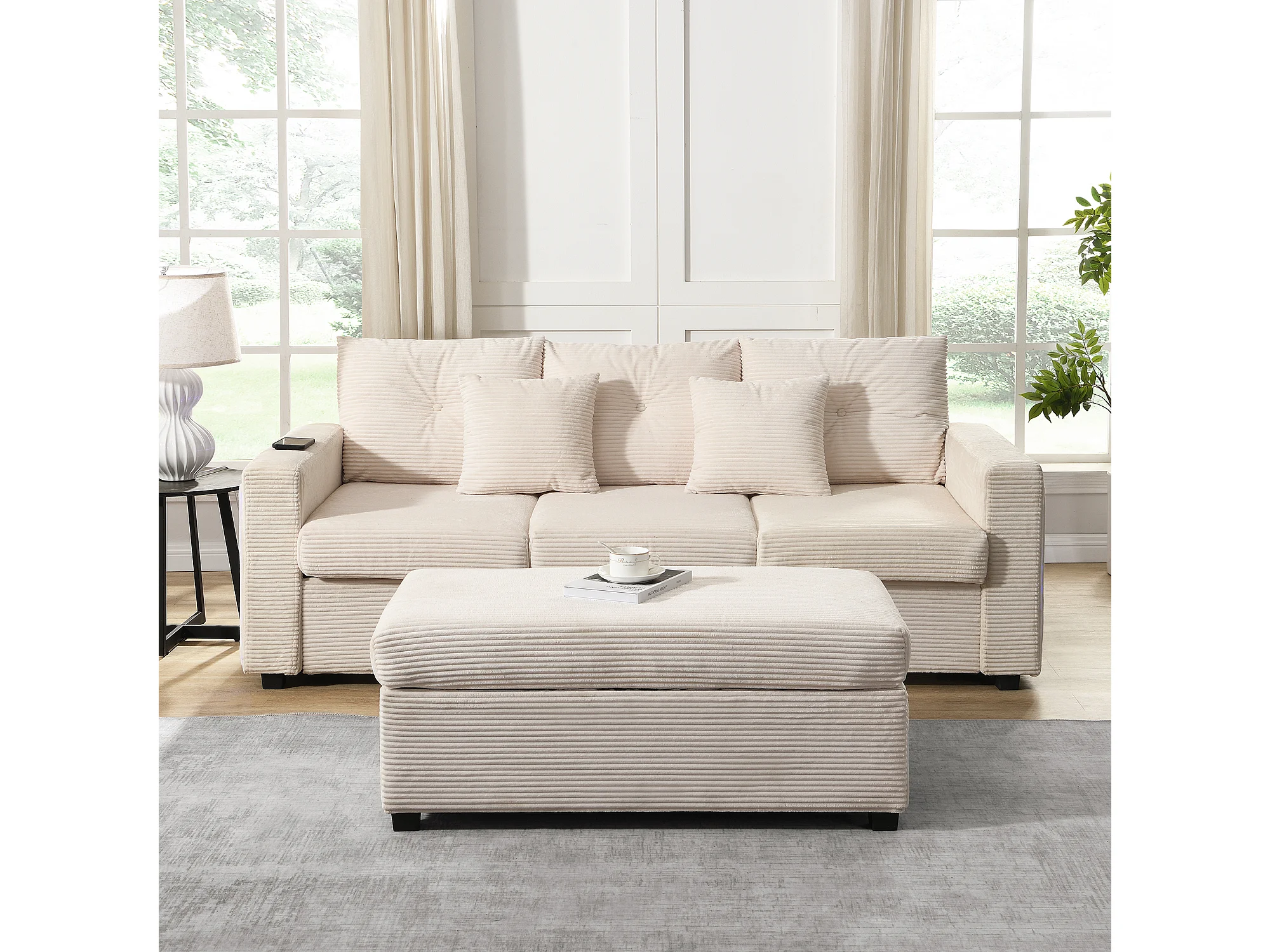 Combinaison de canapé moderne 184x84.5x85.5cm - avec repose-pieds amovible et éclairage LED - avec poches latérales - combinaison libre - Beige