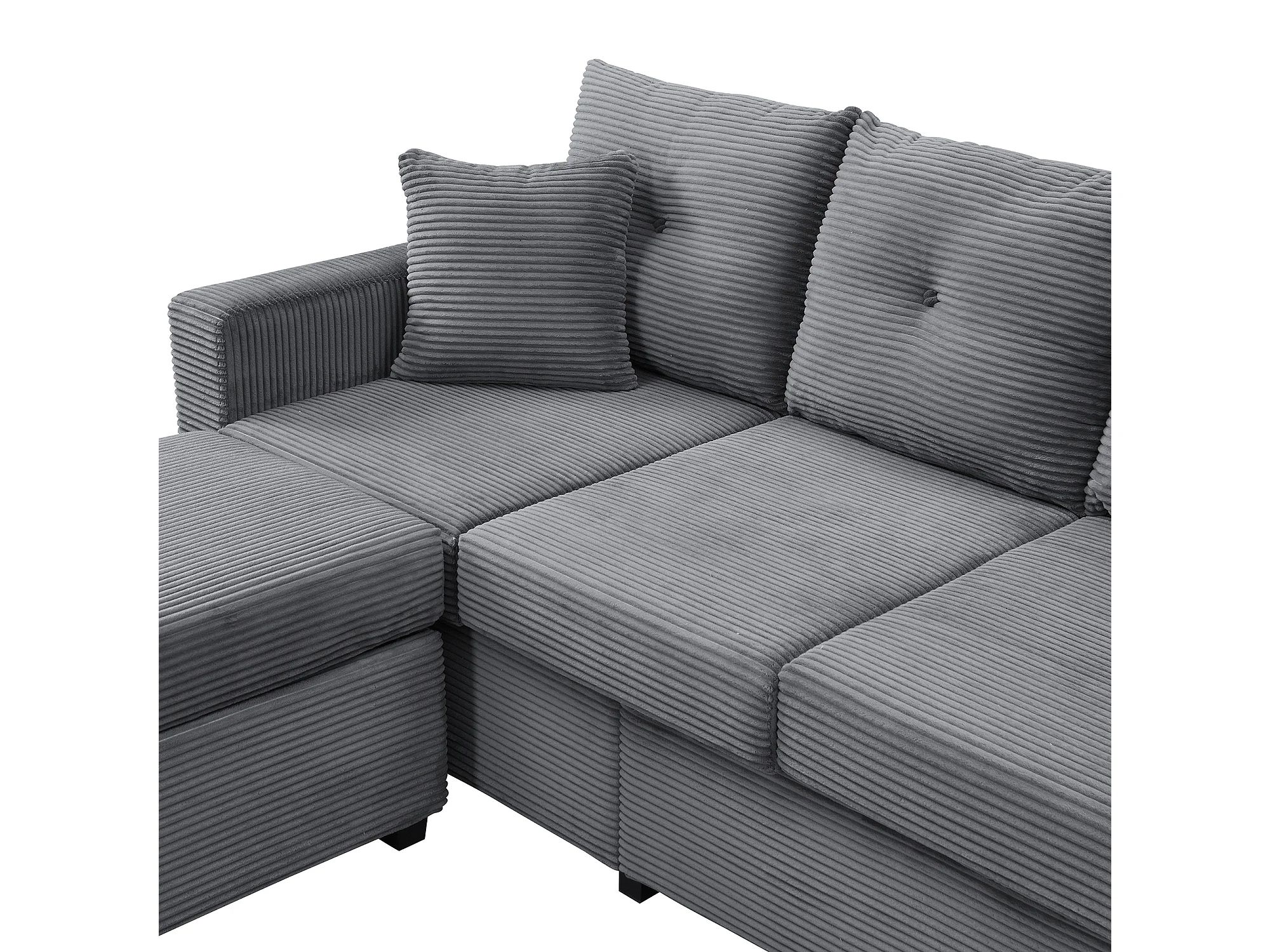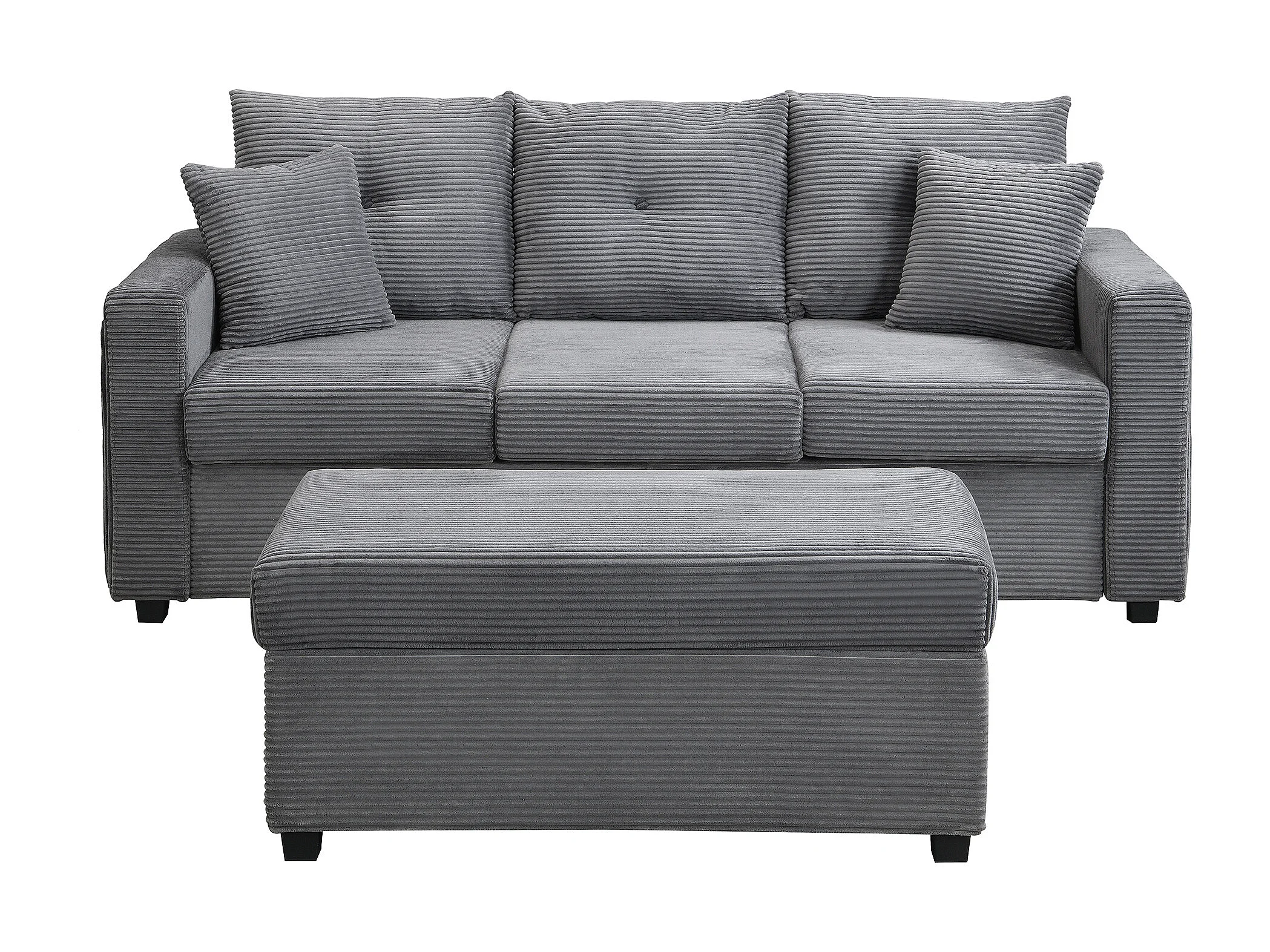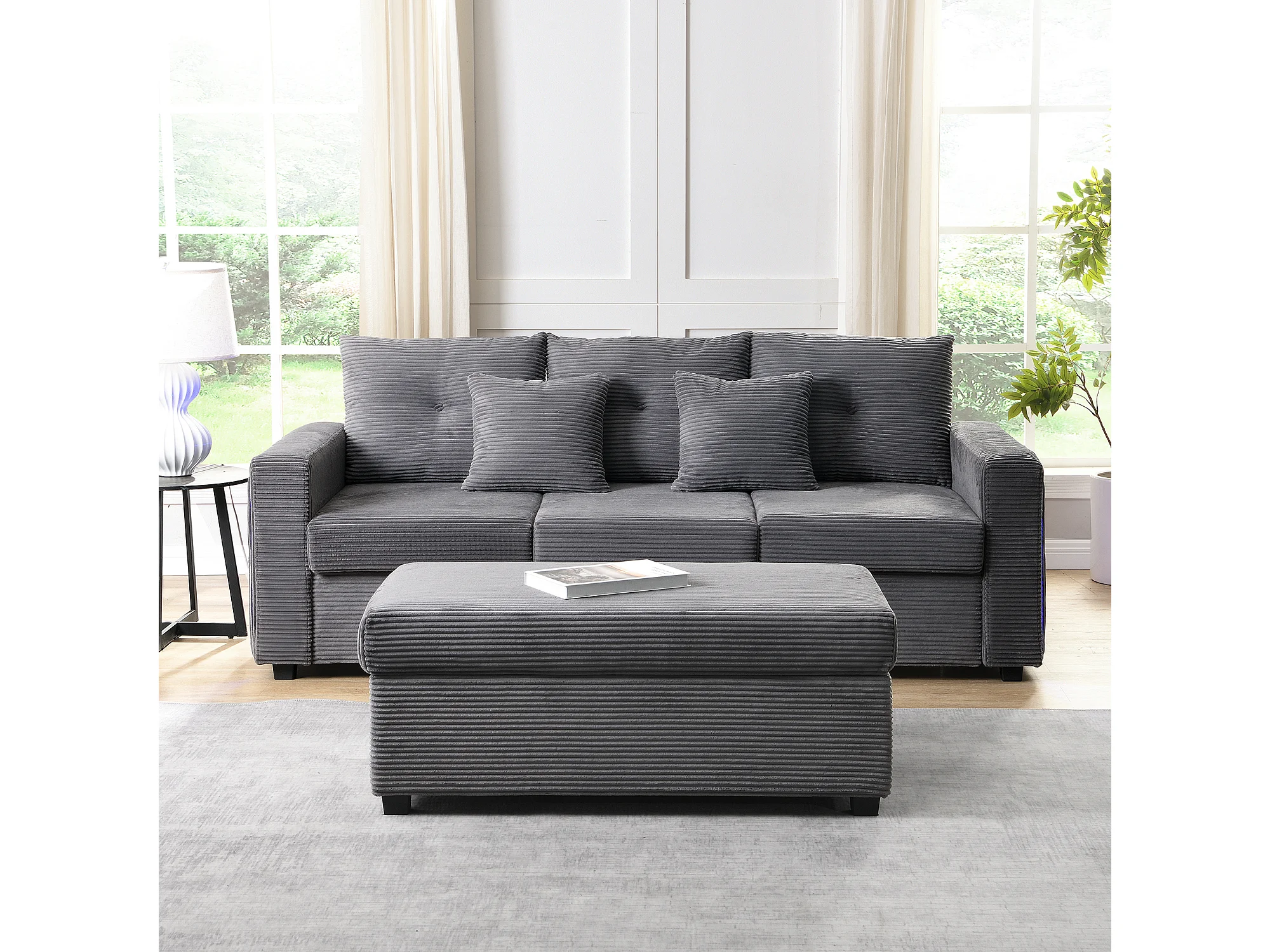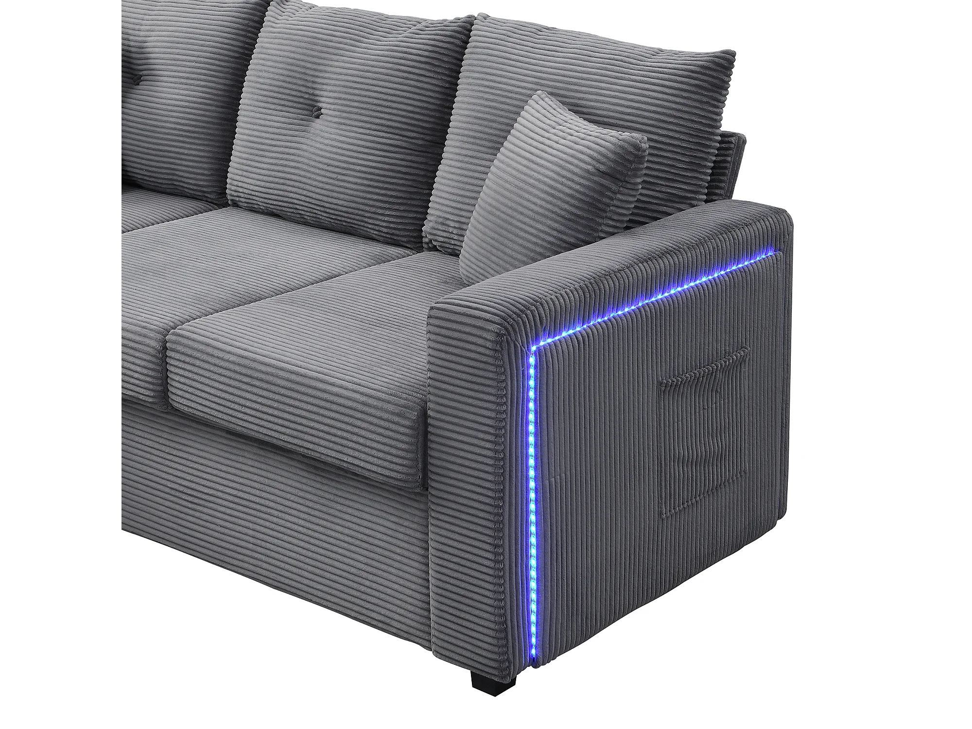 Combinaison de canapé moderne 184x84.5x85.5cm - avec repose-pieds amovible et éclairage LED - avec poches latérales - combinaison libre - Gris
