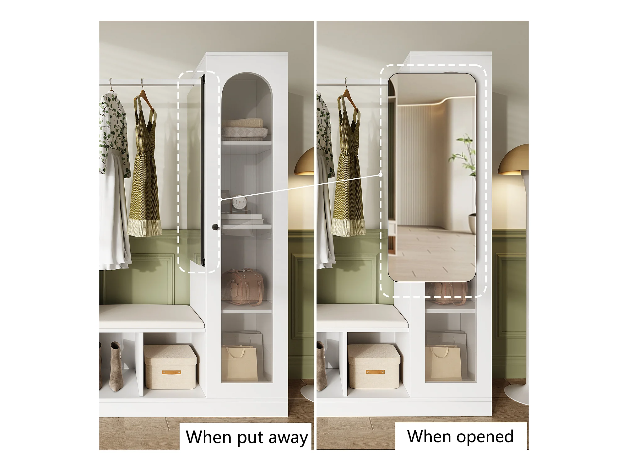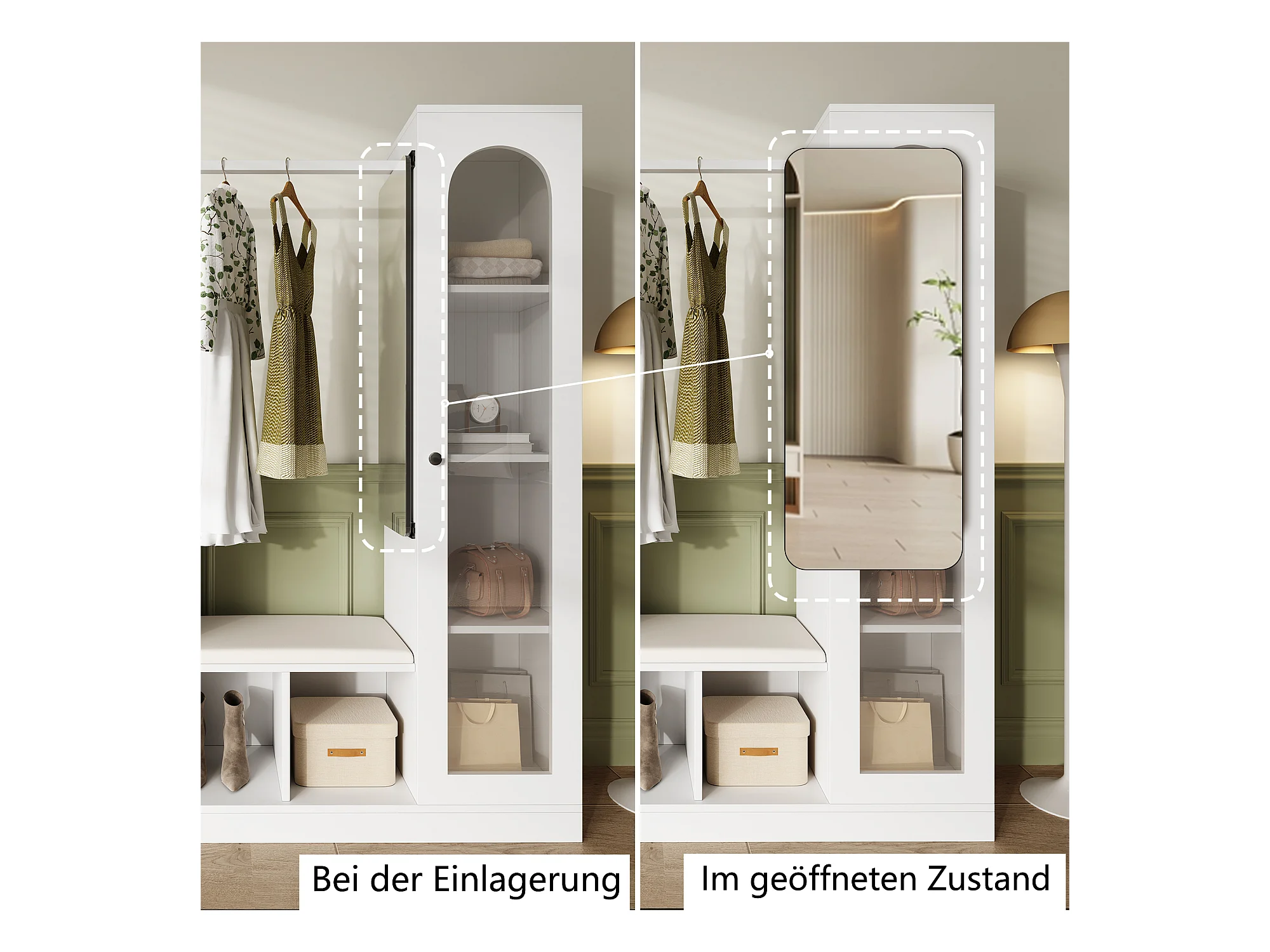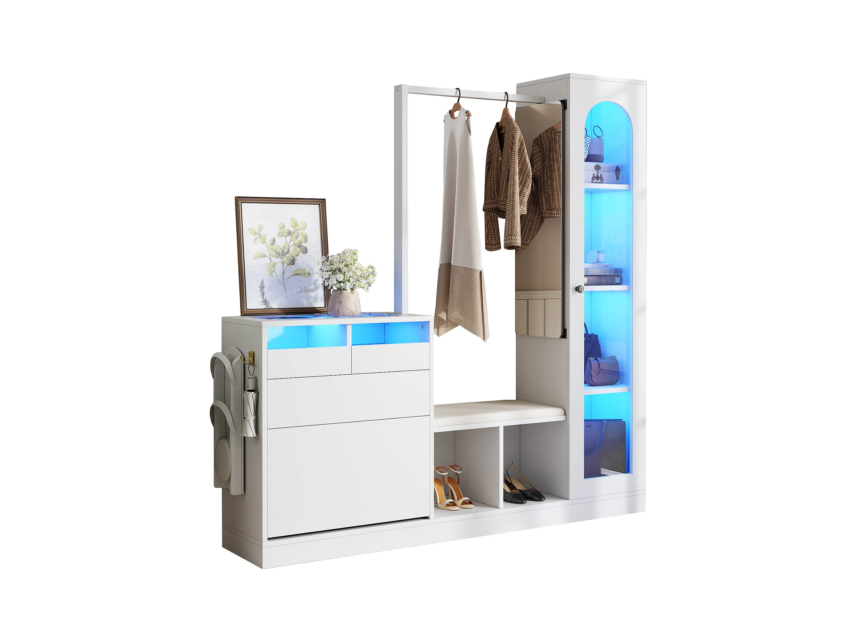 Combinaison d'entrée 6-en-1 avec éclairage LED, panneau de particules, blanc (163x35x161cm)