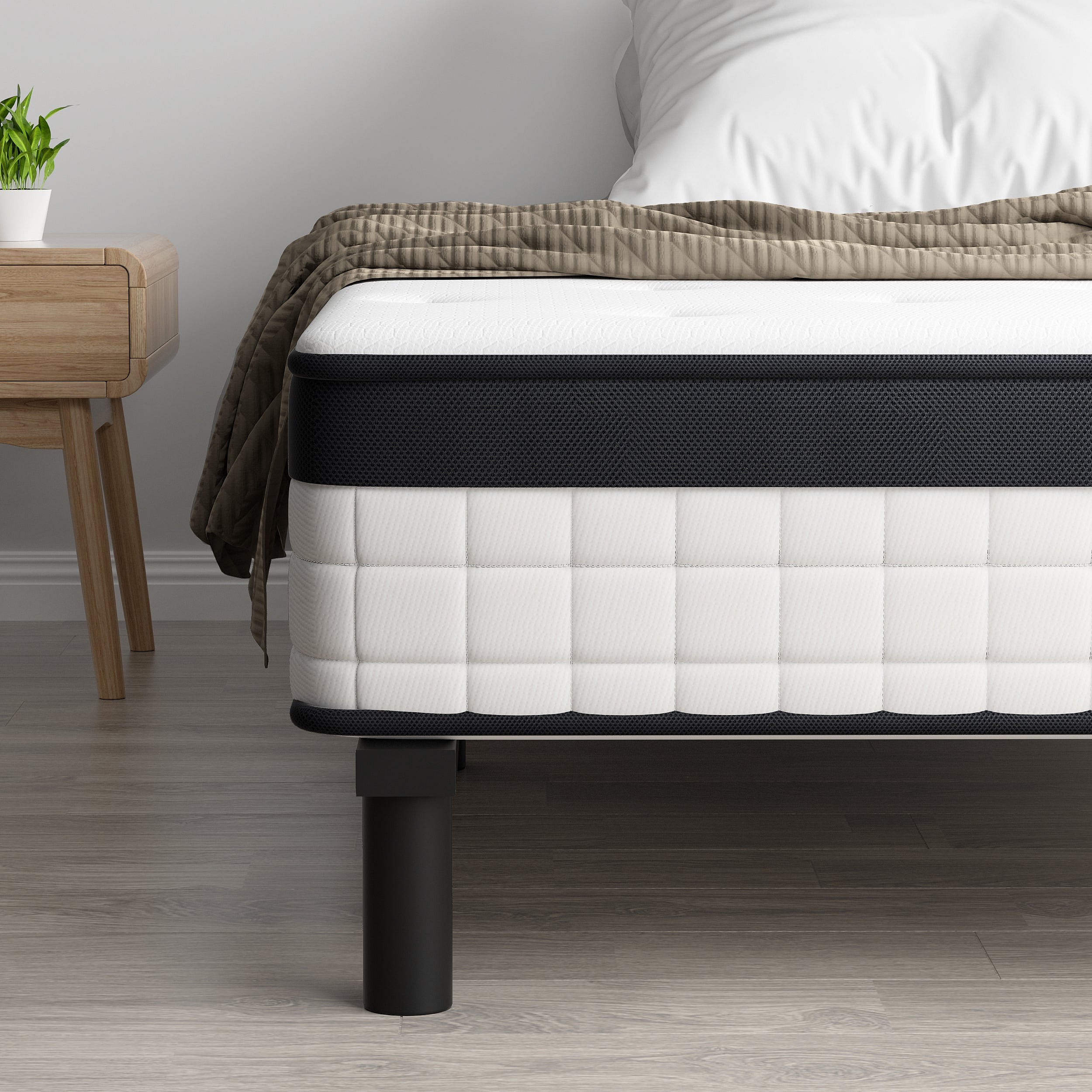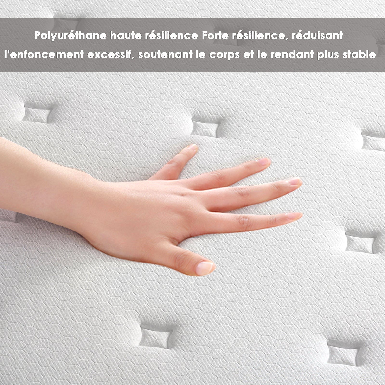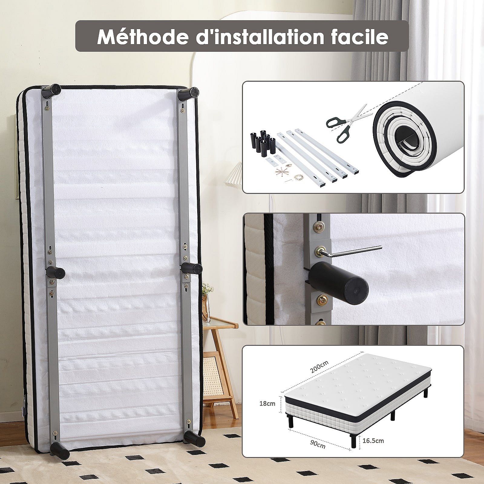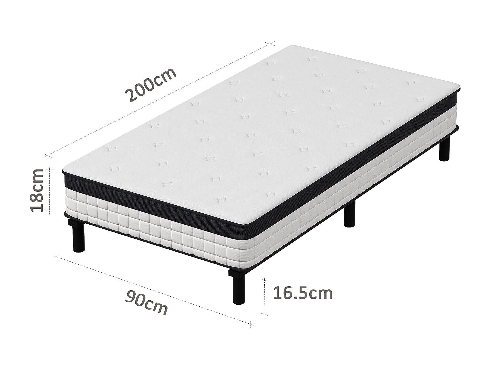 Ensemble 90x200cm matelas-châssis, matelas à ressorts ensachés et haute résilience + cadre de lit en fer robuste, comprenant 6 pieds, épaisseur 18cm