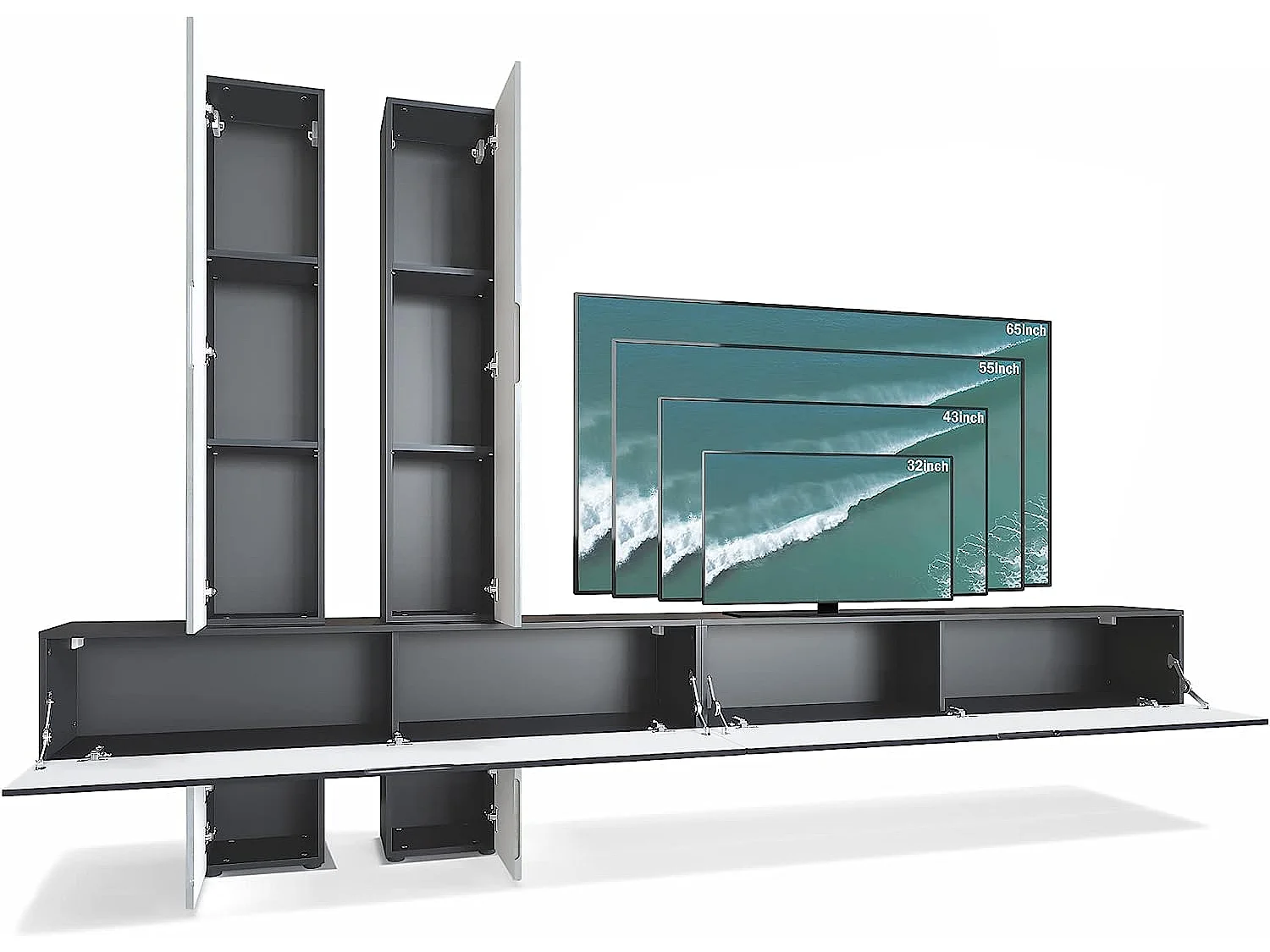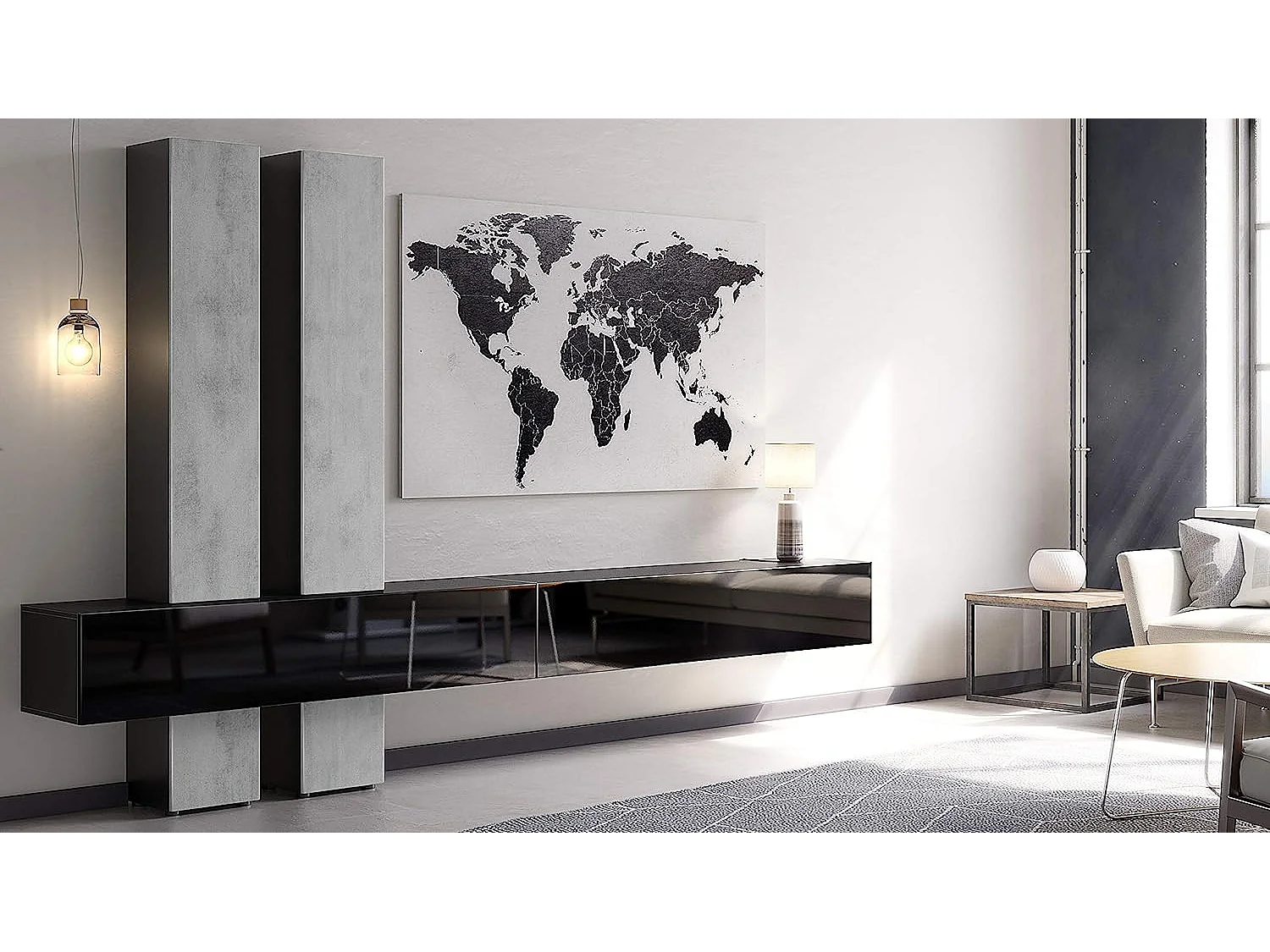 Combinaison Murale Corps en Noir Mat/Façades en Noir Haute Brillance et Aspect Béton Oxyde (HxLxP): 204 x 330 x 39