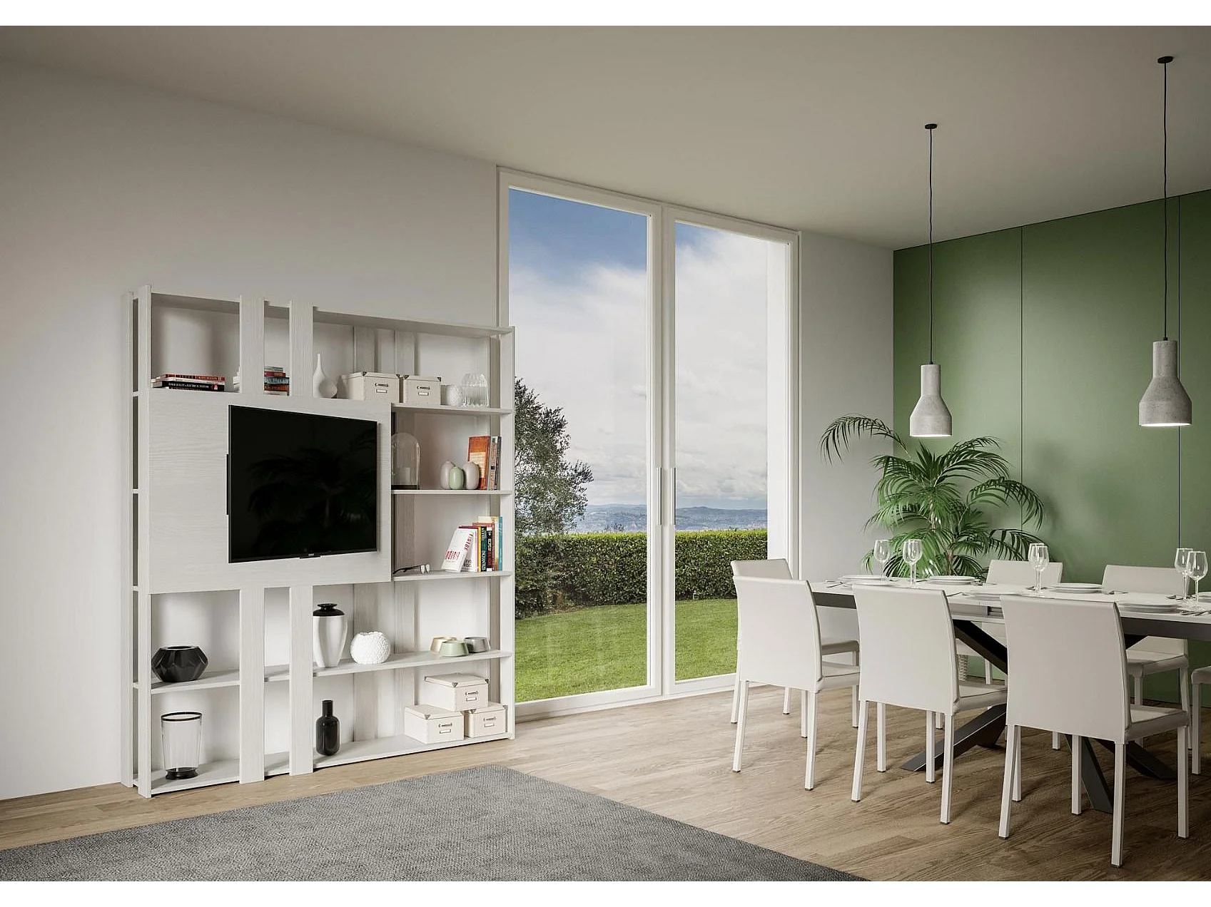 Bibliothèque avec support TV Kato N frêne blanc