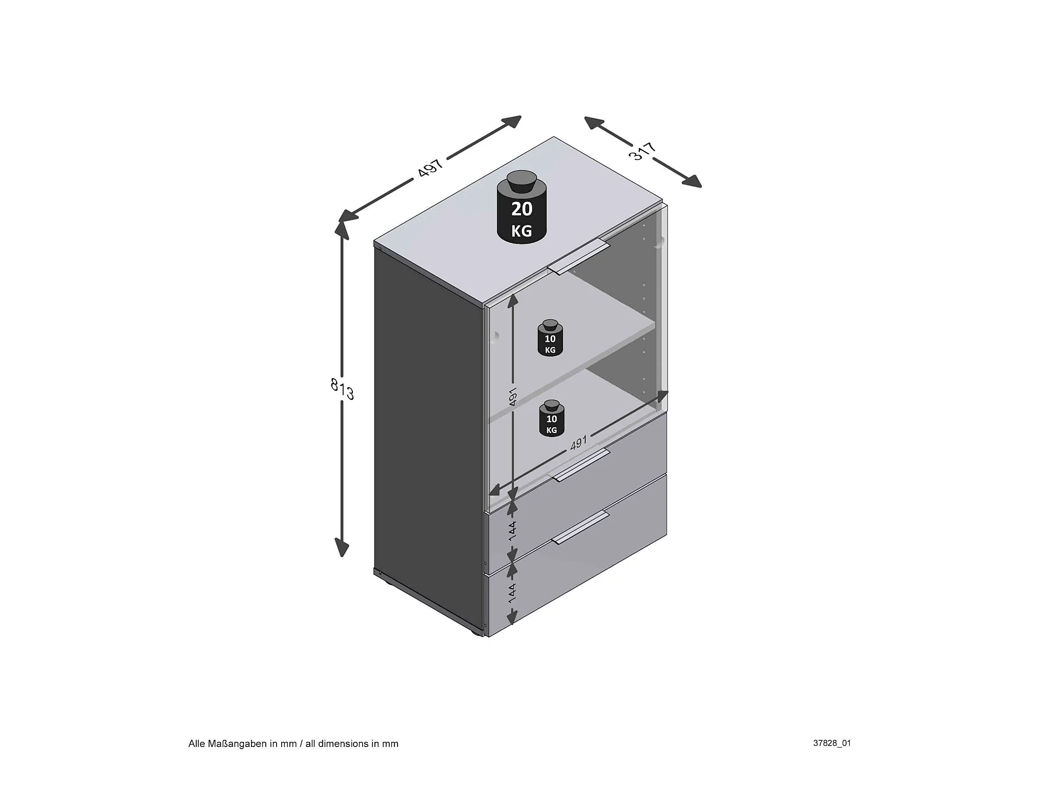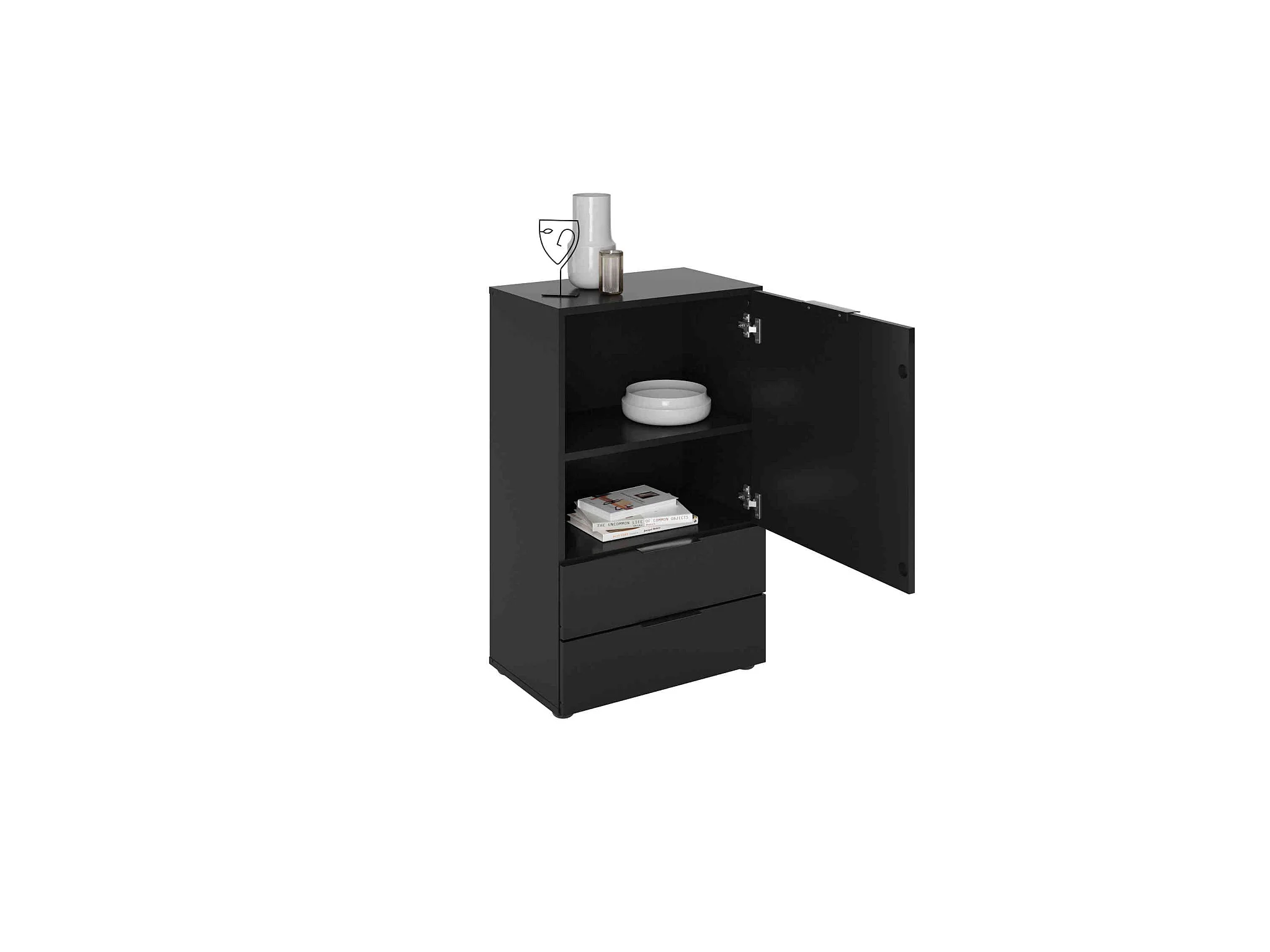 Commode 1 porte 2 tiroirs en bois noir satiné - CO13034-3