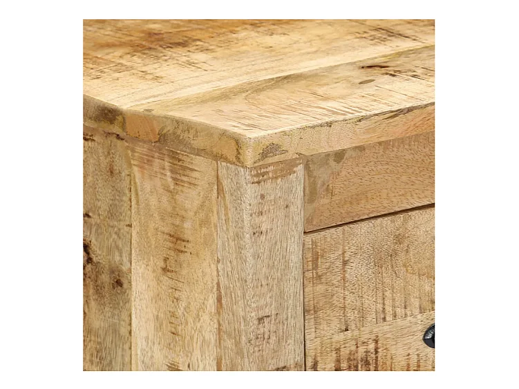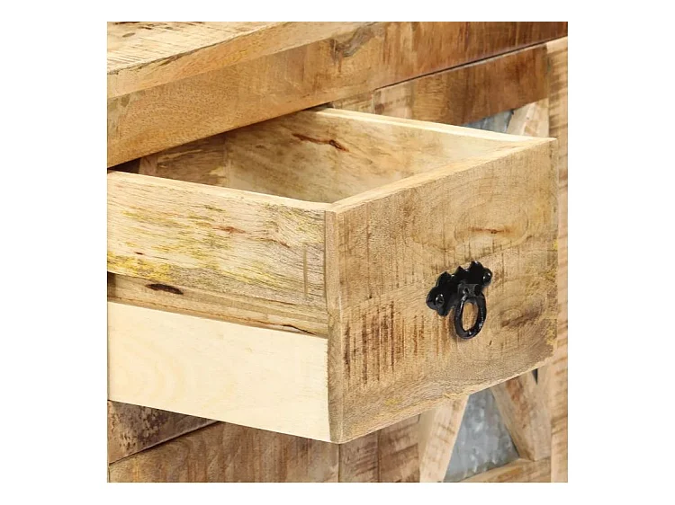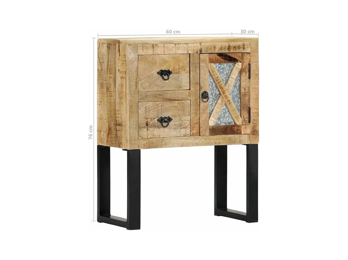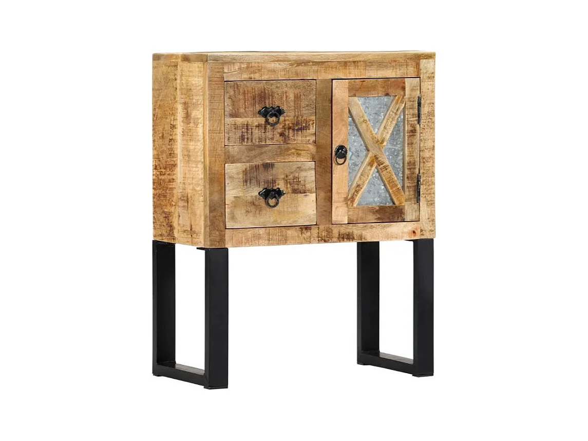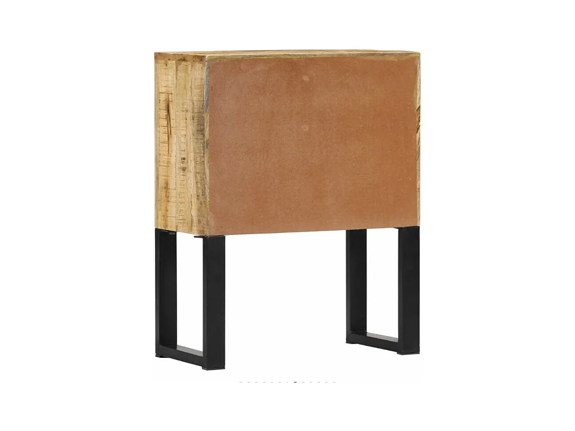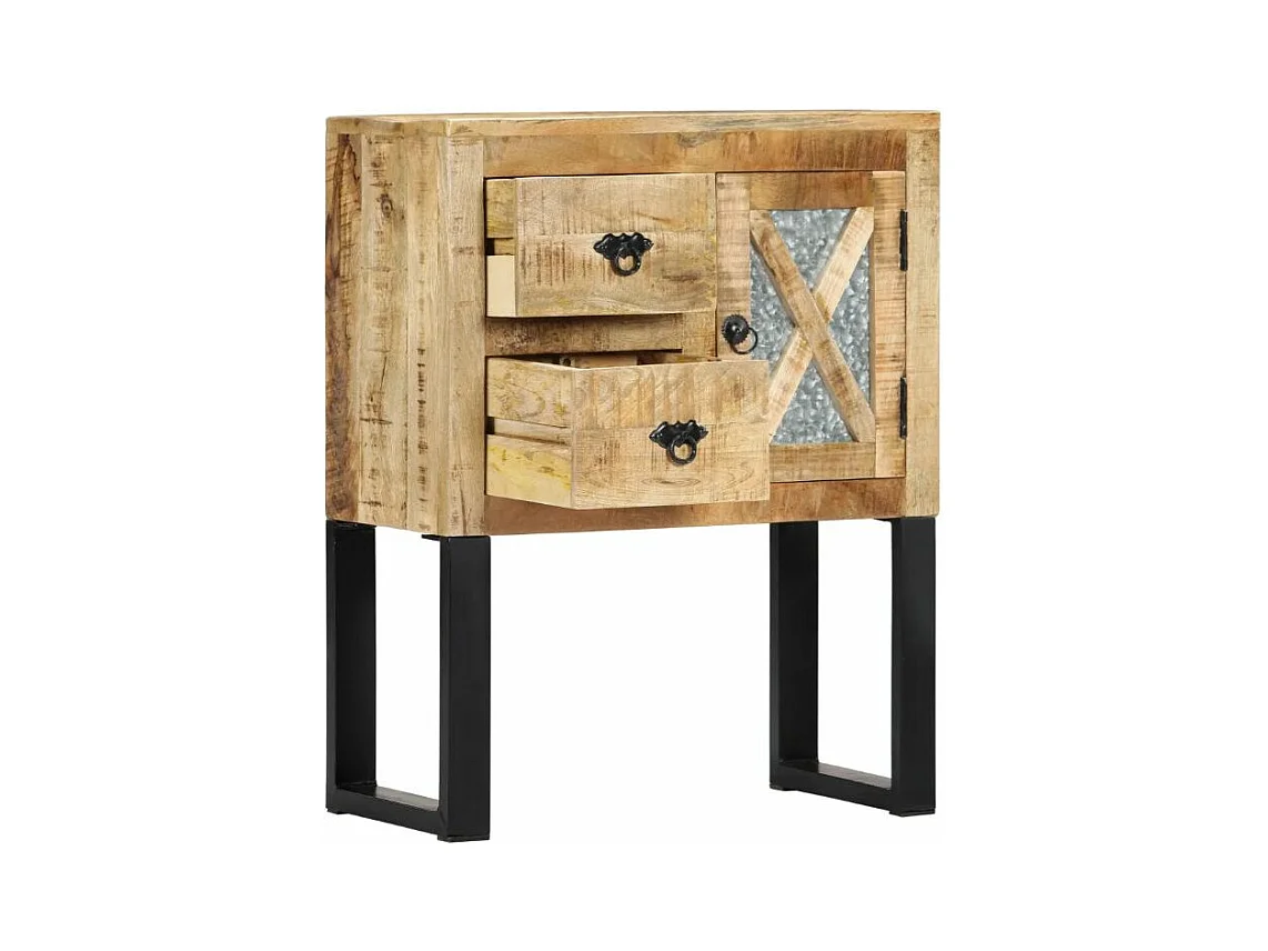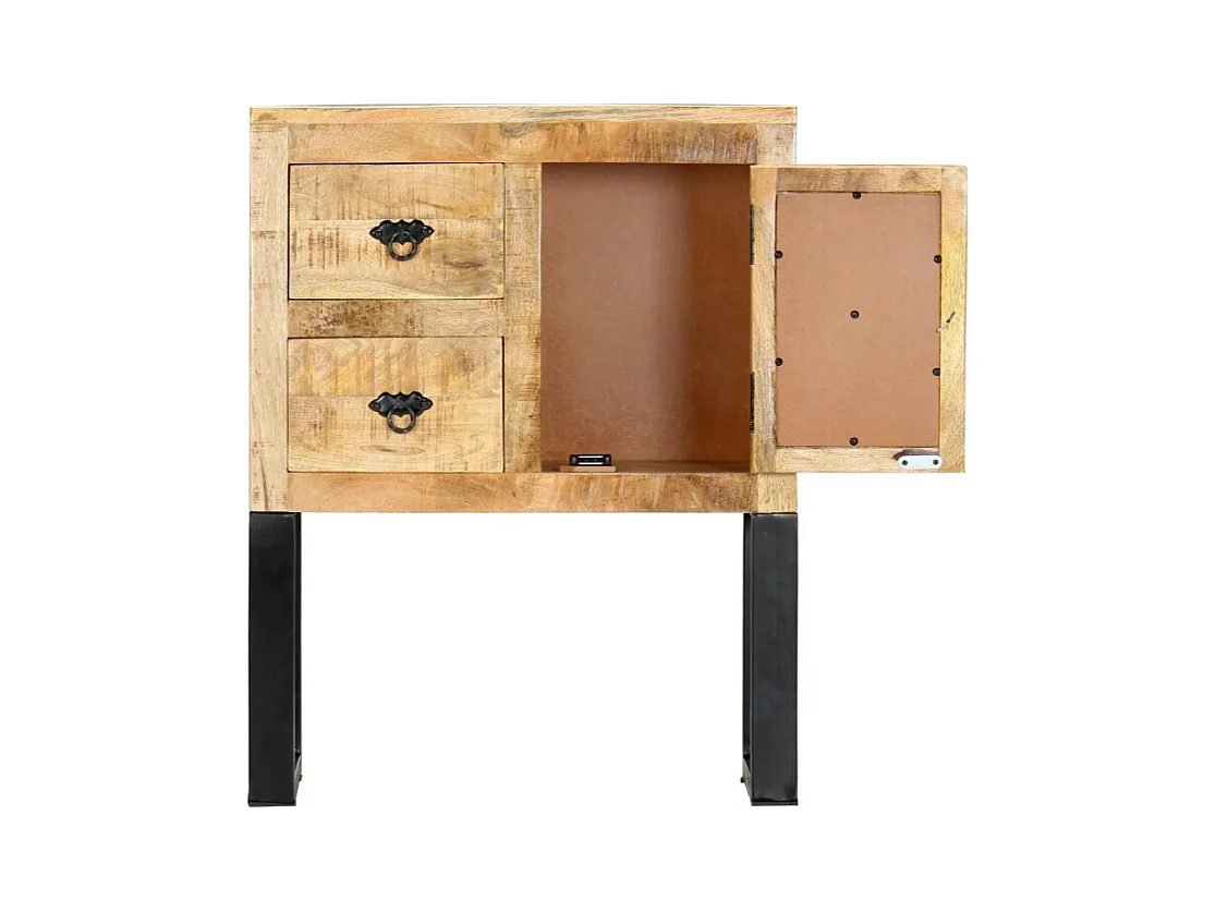 Commode 1 porte 2 tiroirs manguier massif clair et métal noir Maneci