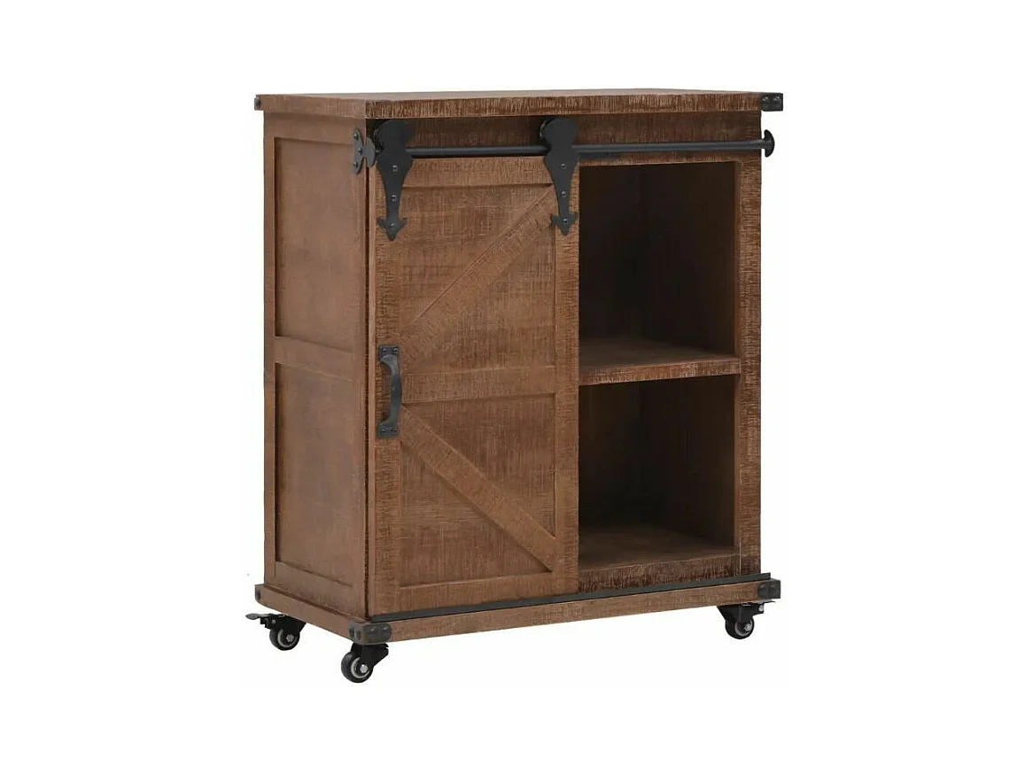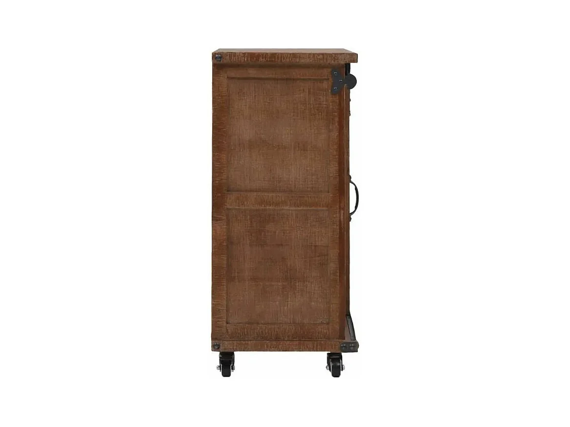 Commode 1 porte 3 tiroirs pin massif foncé Cassie