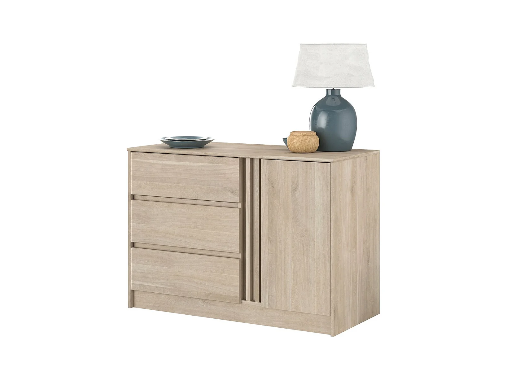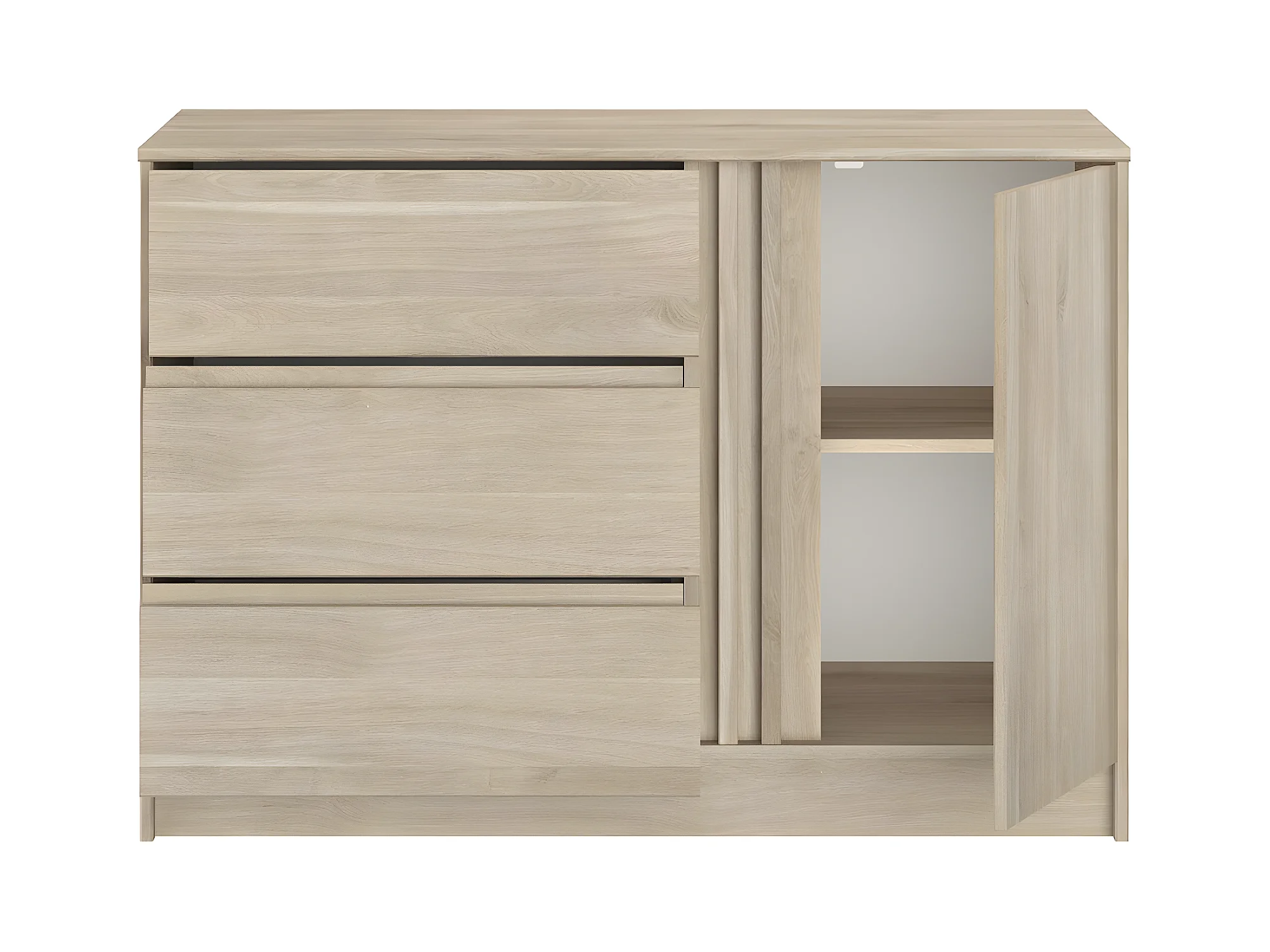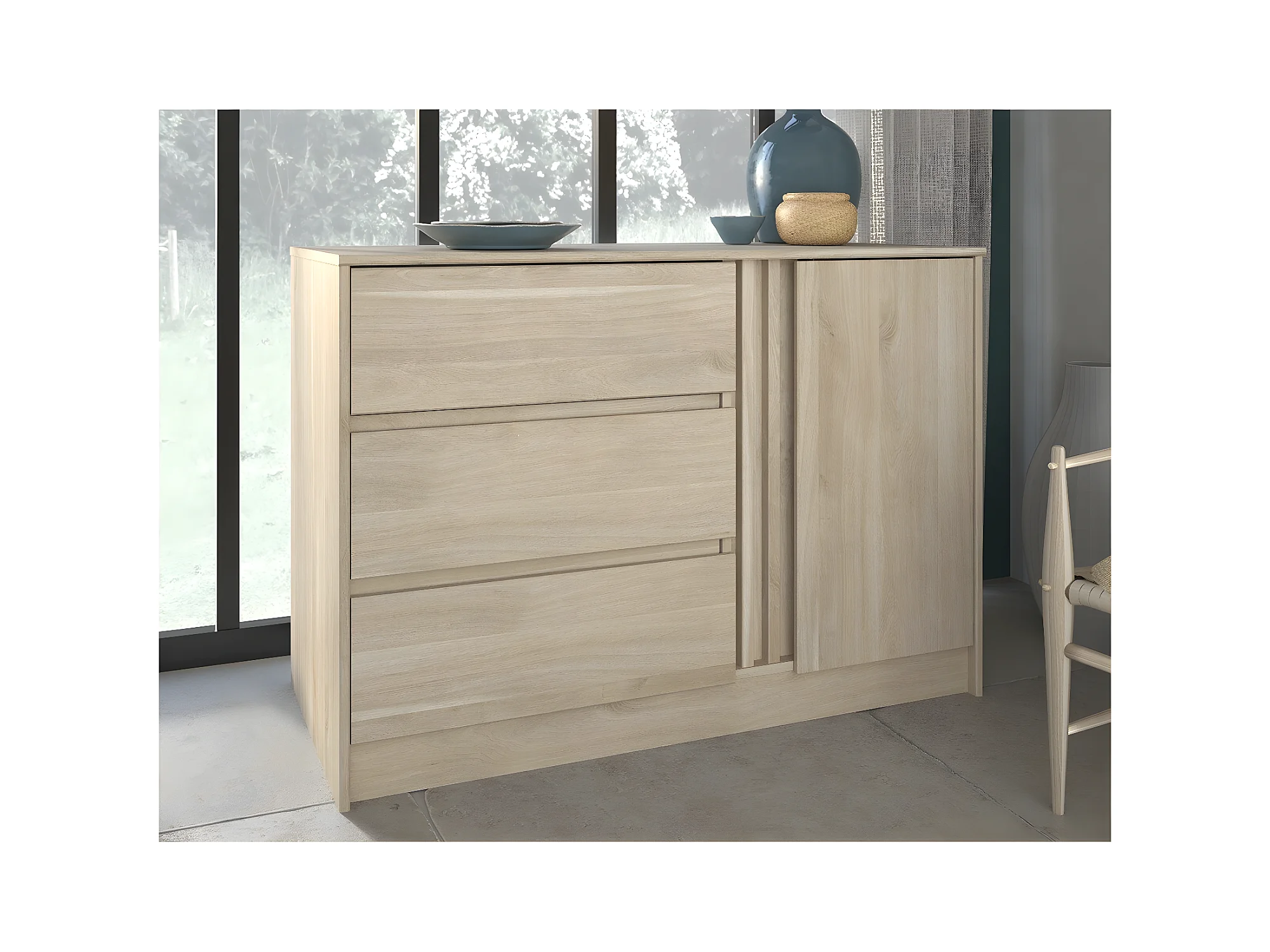 Commode 1 porte 3 tiroirs réversibles blanc chêne L110 cm - Escale