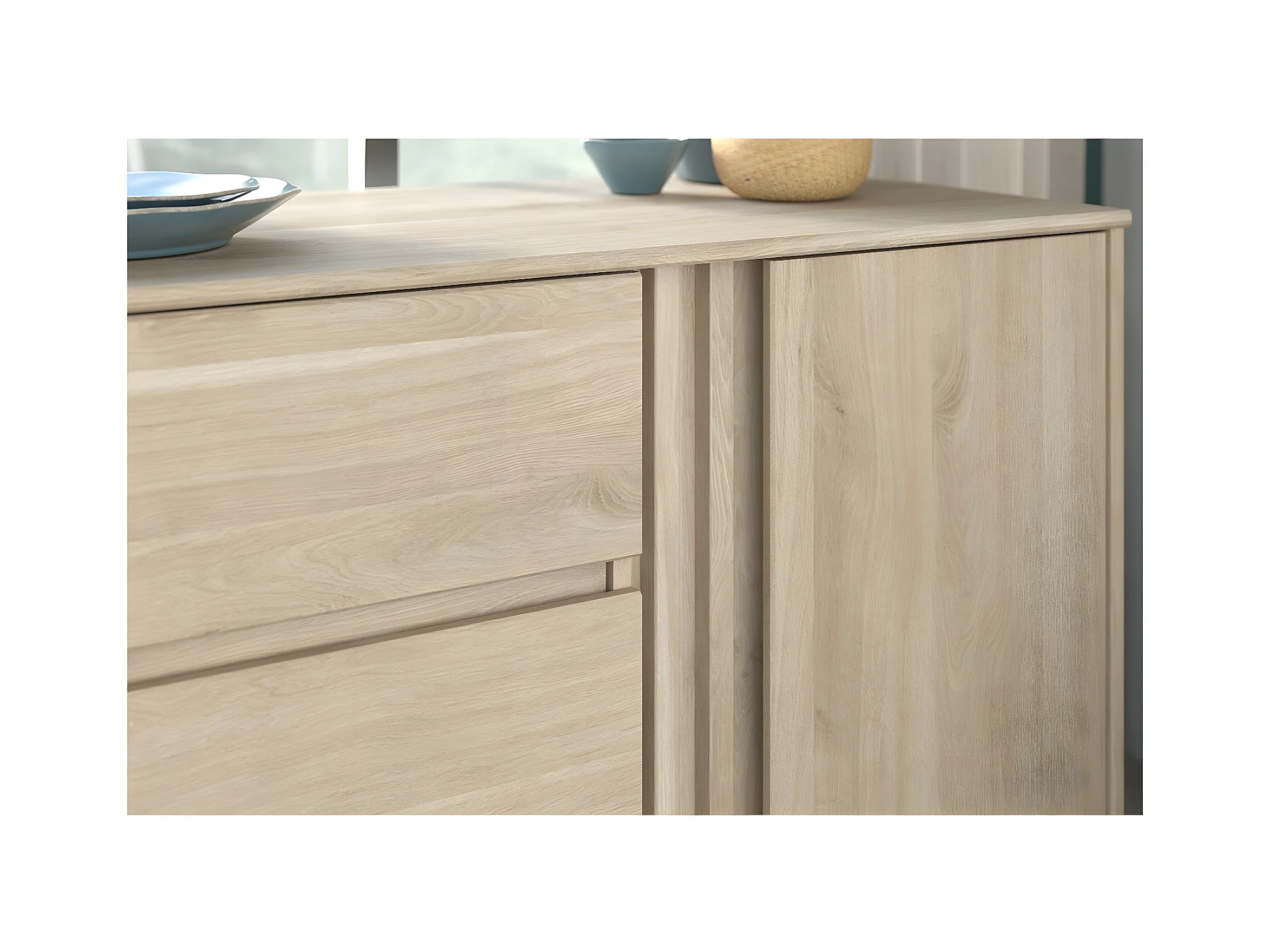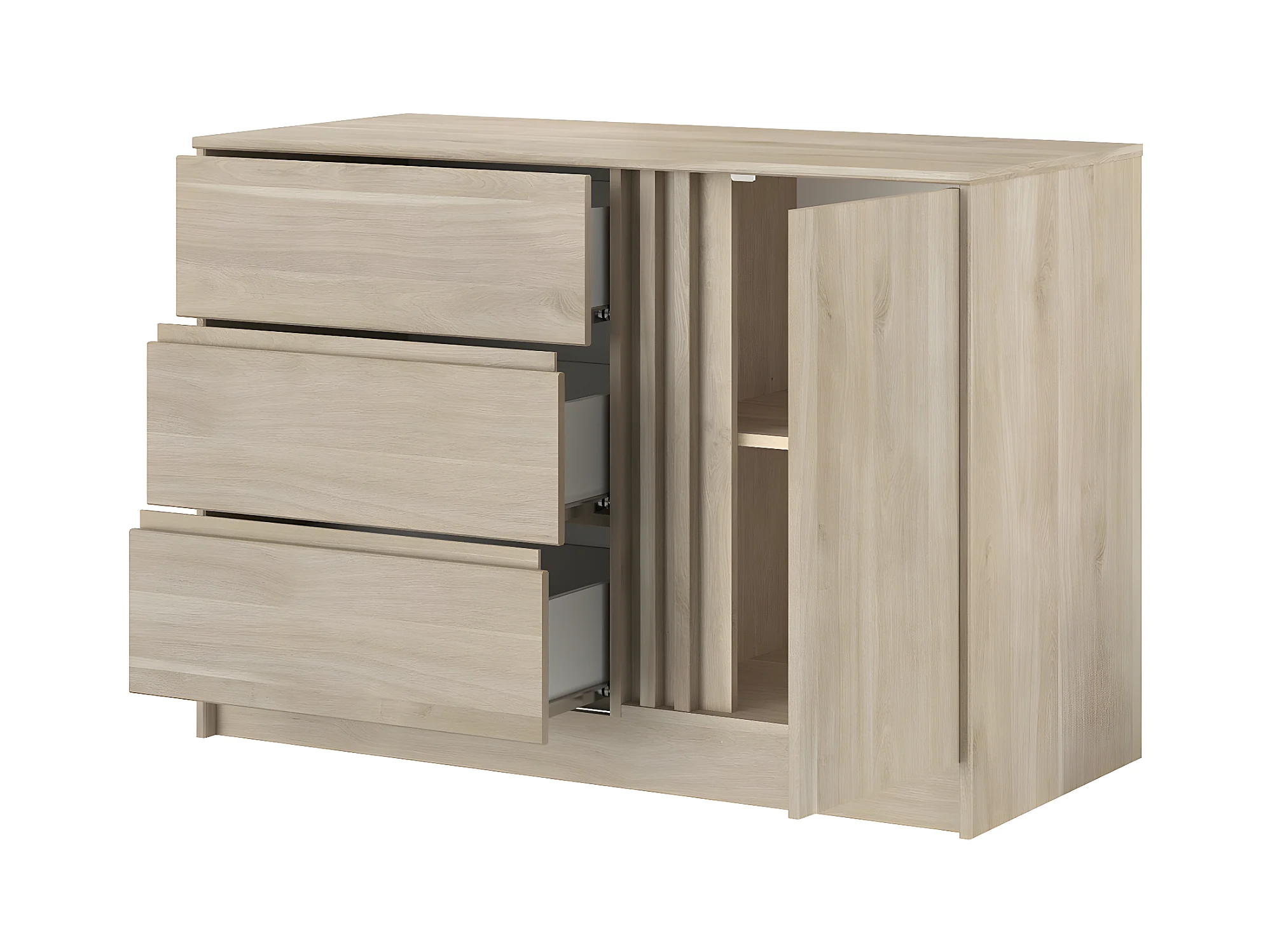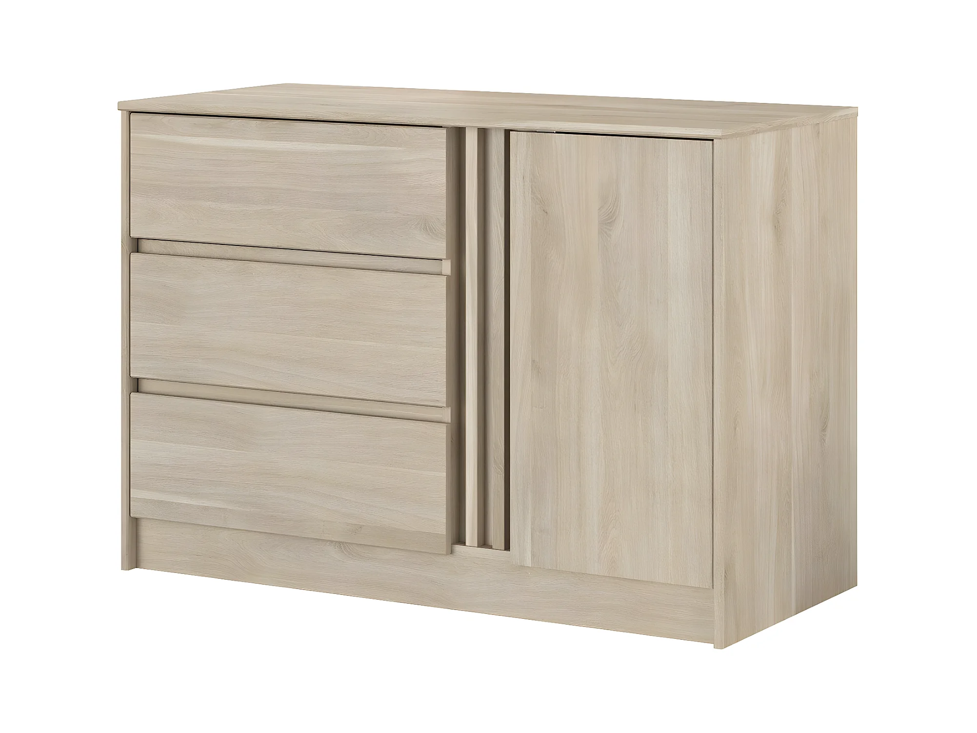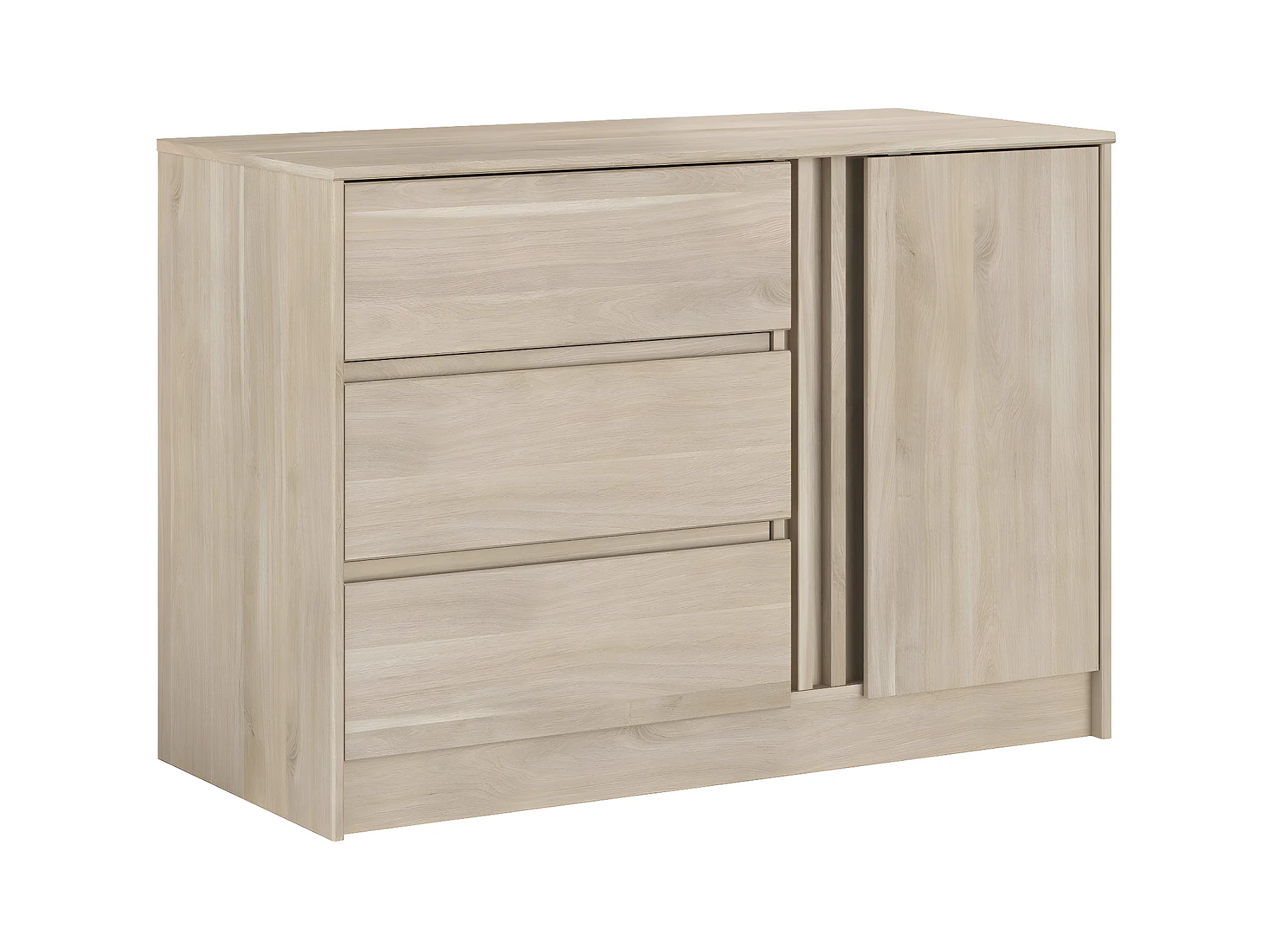 Commode 1 porte 3 tiroirs réversibles blanc chêne L110 cm - Escale