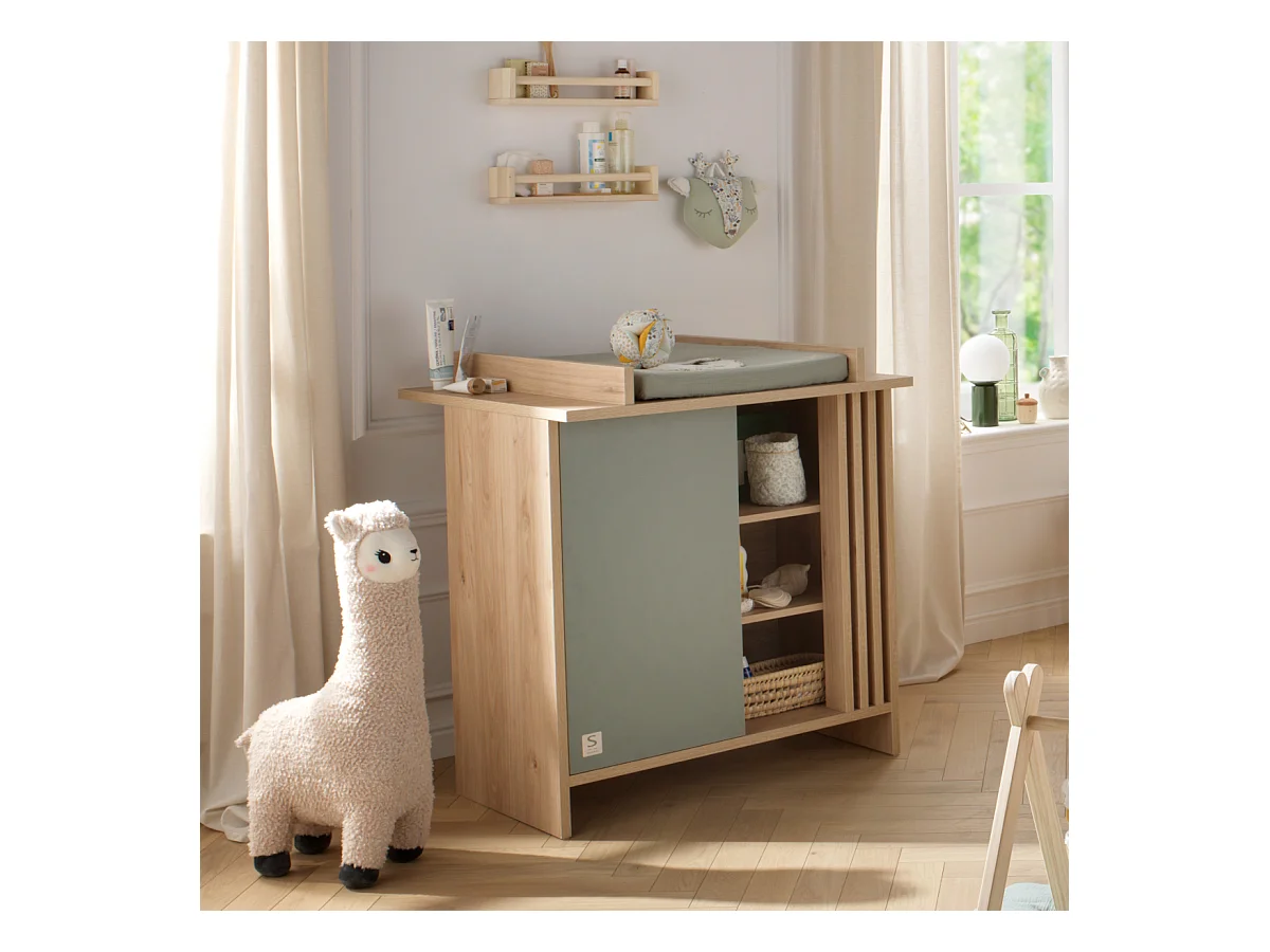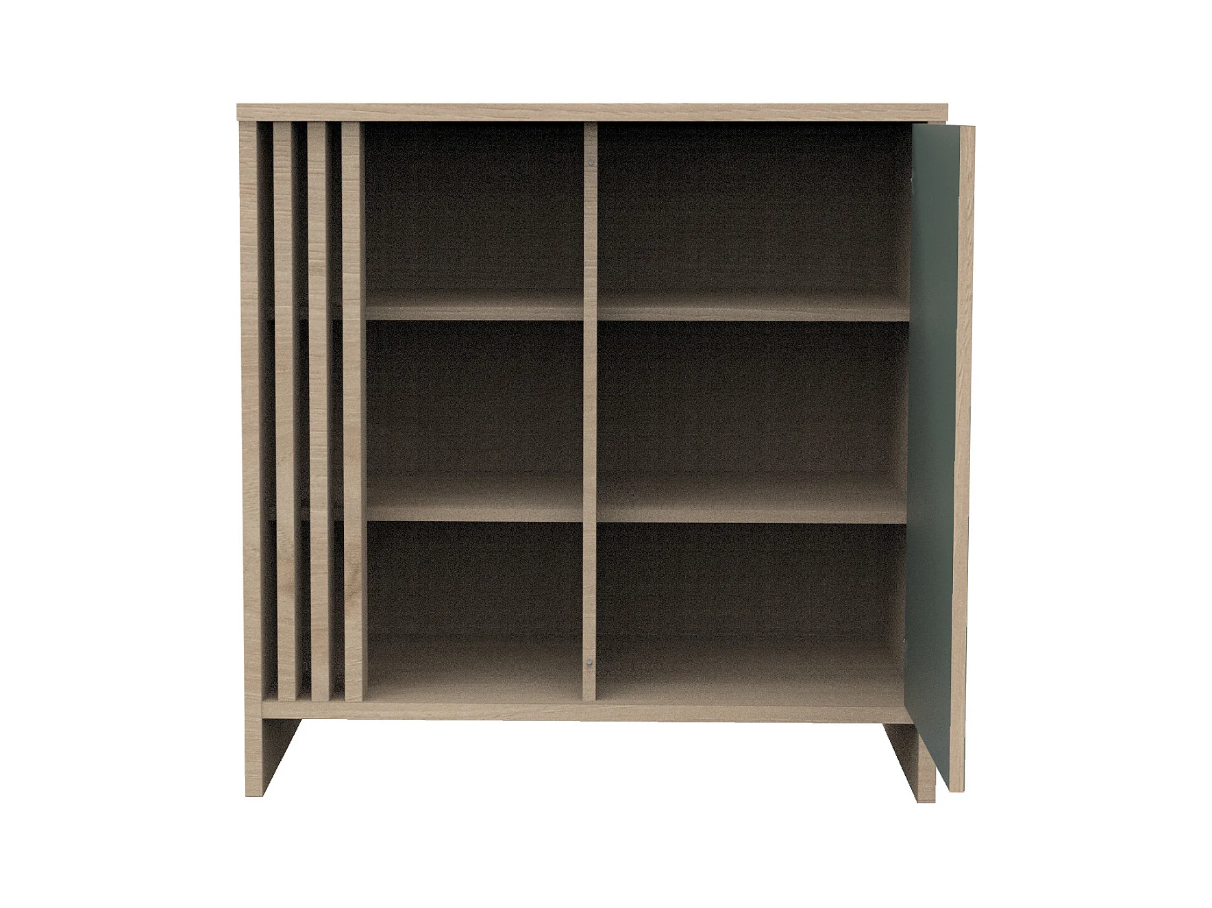 Commode 1 porte colorée et 3 niches avec claustra en bois décor chêne Suave TOKYO - Sauthon