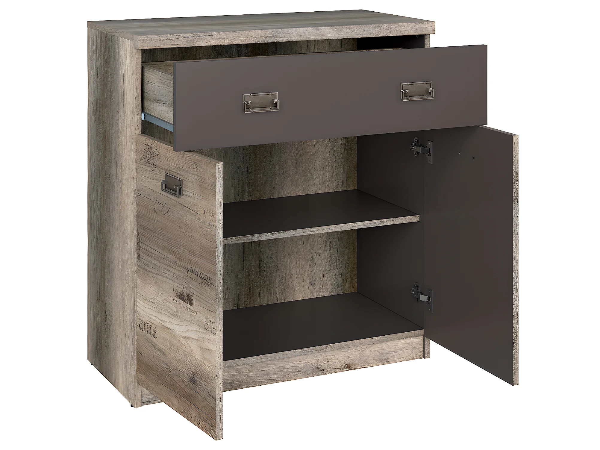 Commode 1 tiroir 2 portes Abel Bois et Gris