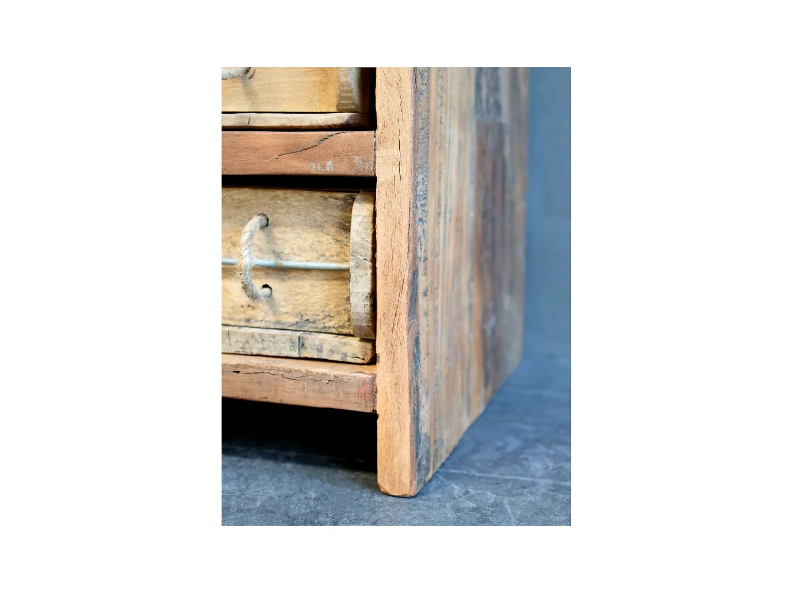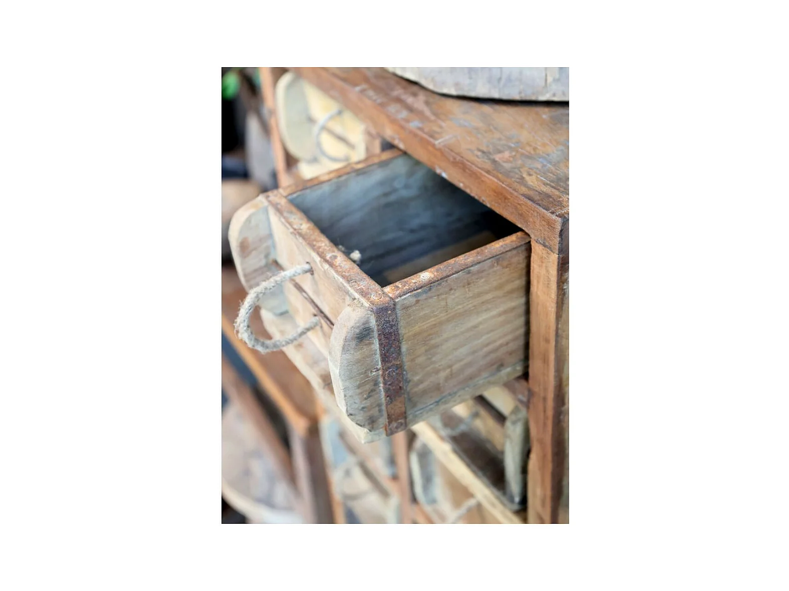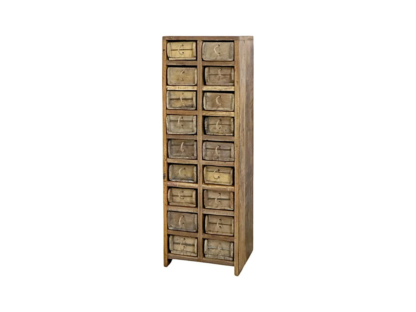 Commode 18 tiroirs en bois recyclé antique marron 39 x 34 x 122 cm