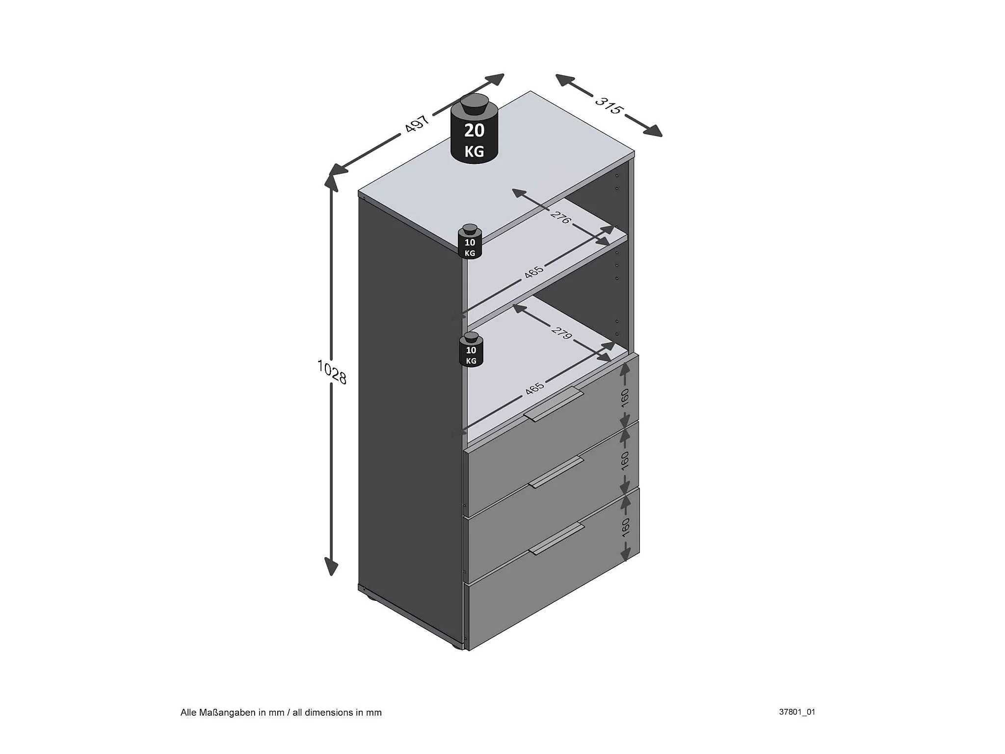 Commode 2 niches 3 tiroirs en bois noir satiné - CO13034-4