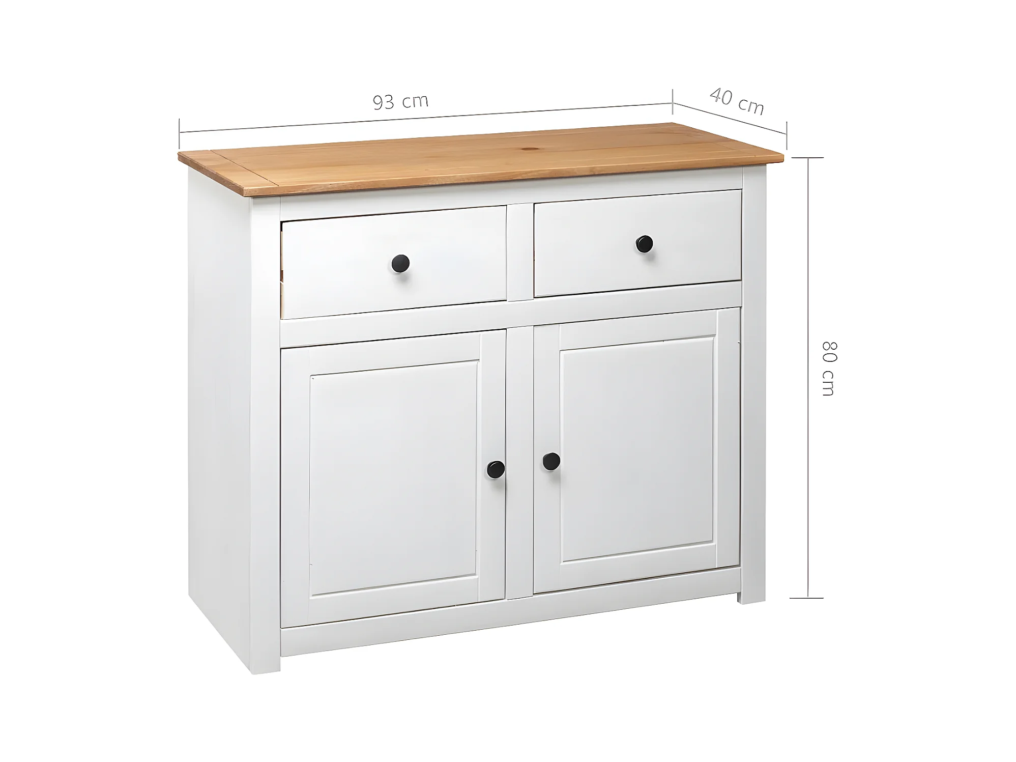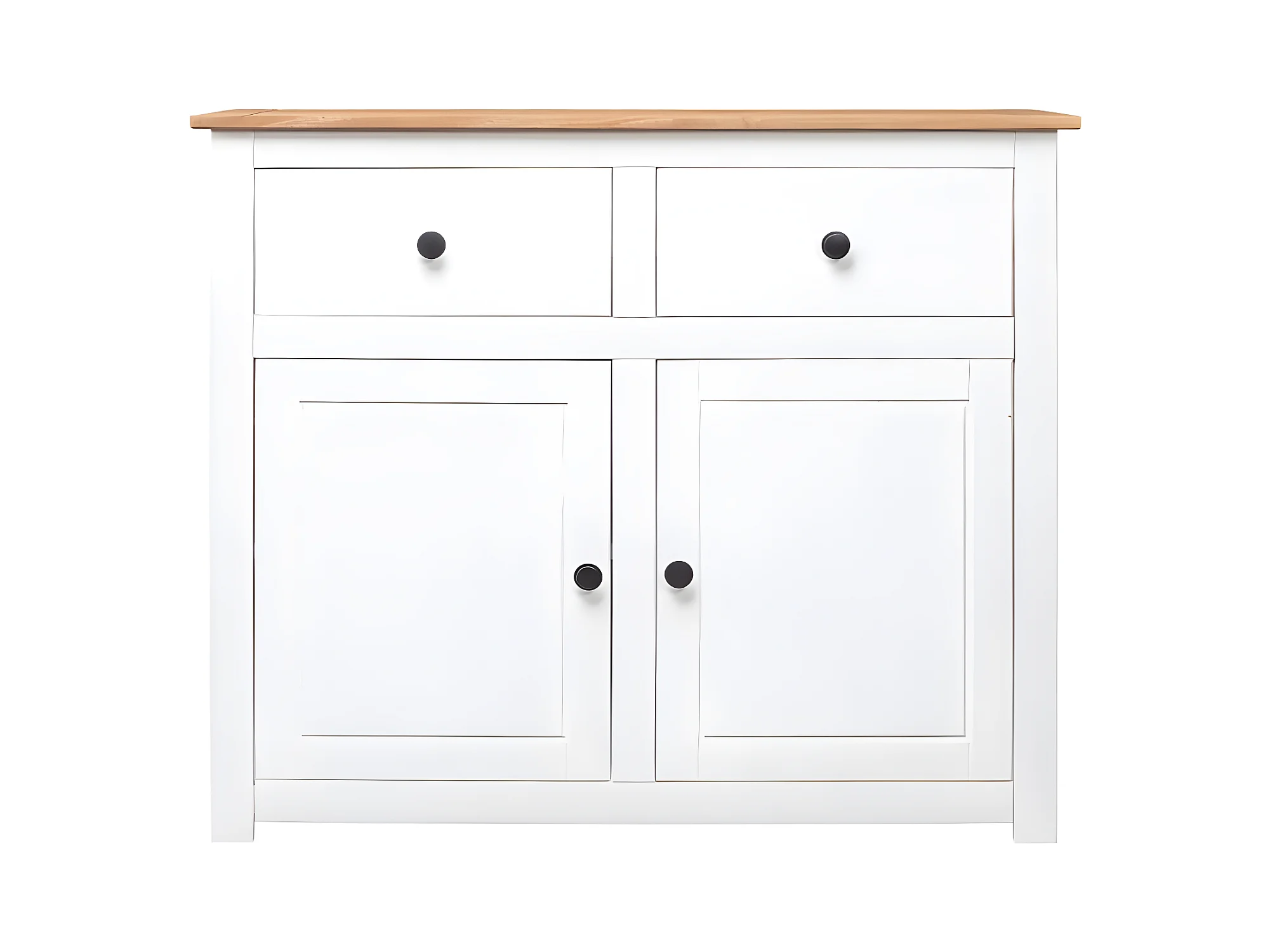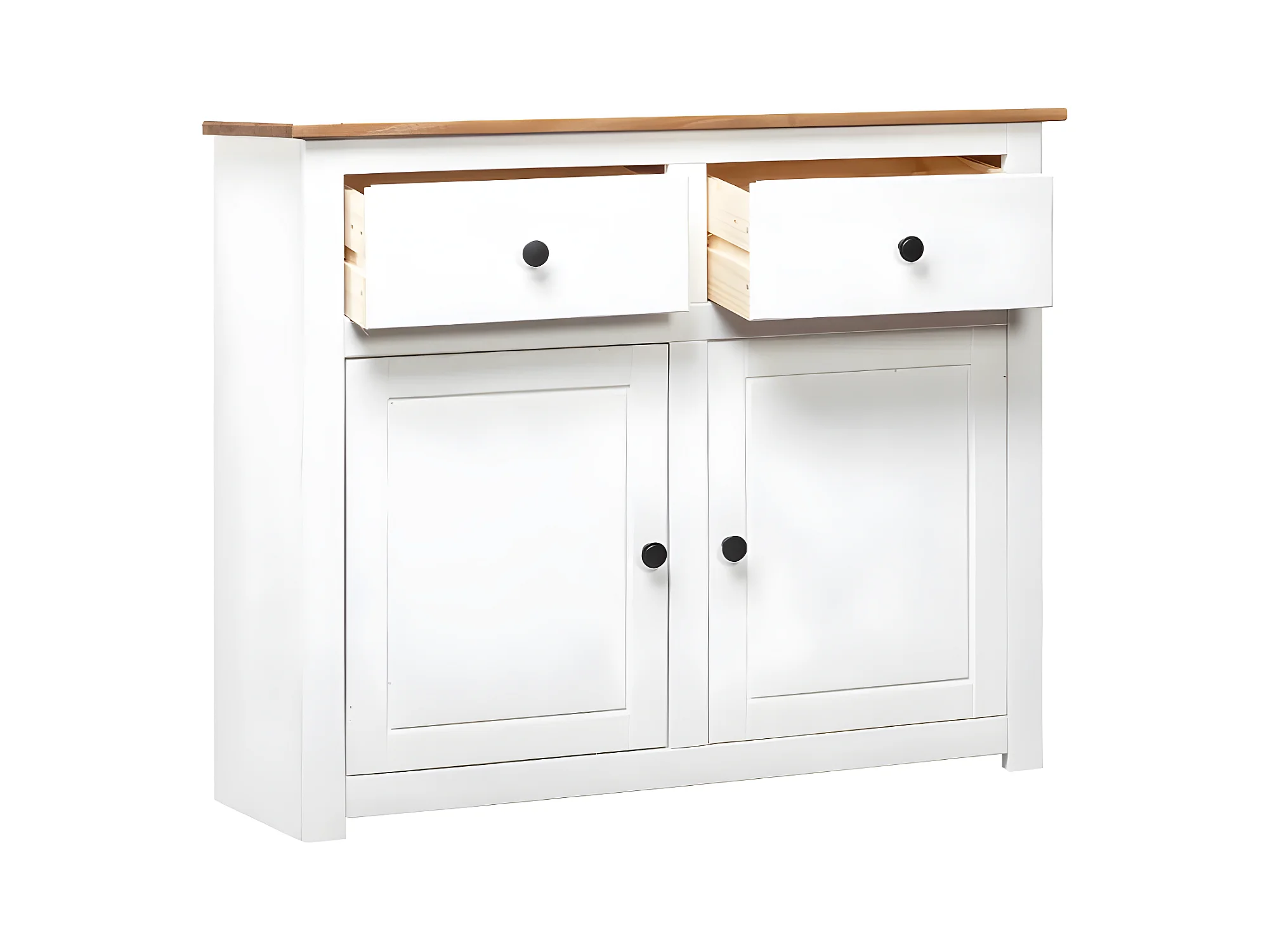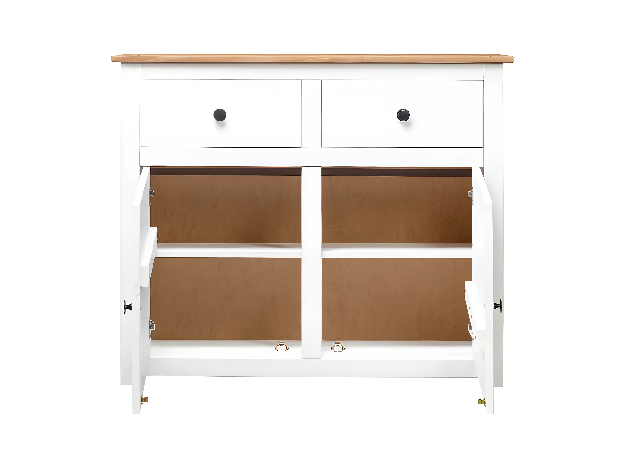Commode 2 portes 2 tiroirs pin massif blanc et clair Iris