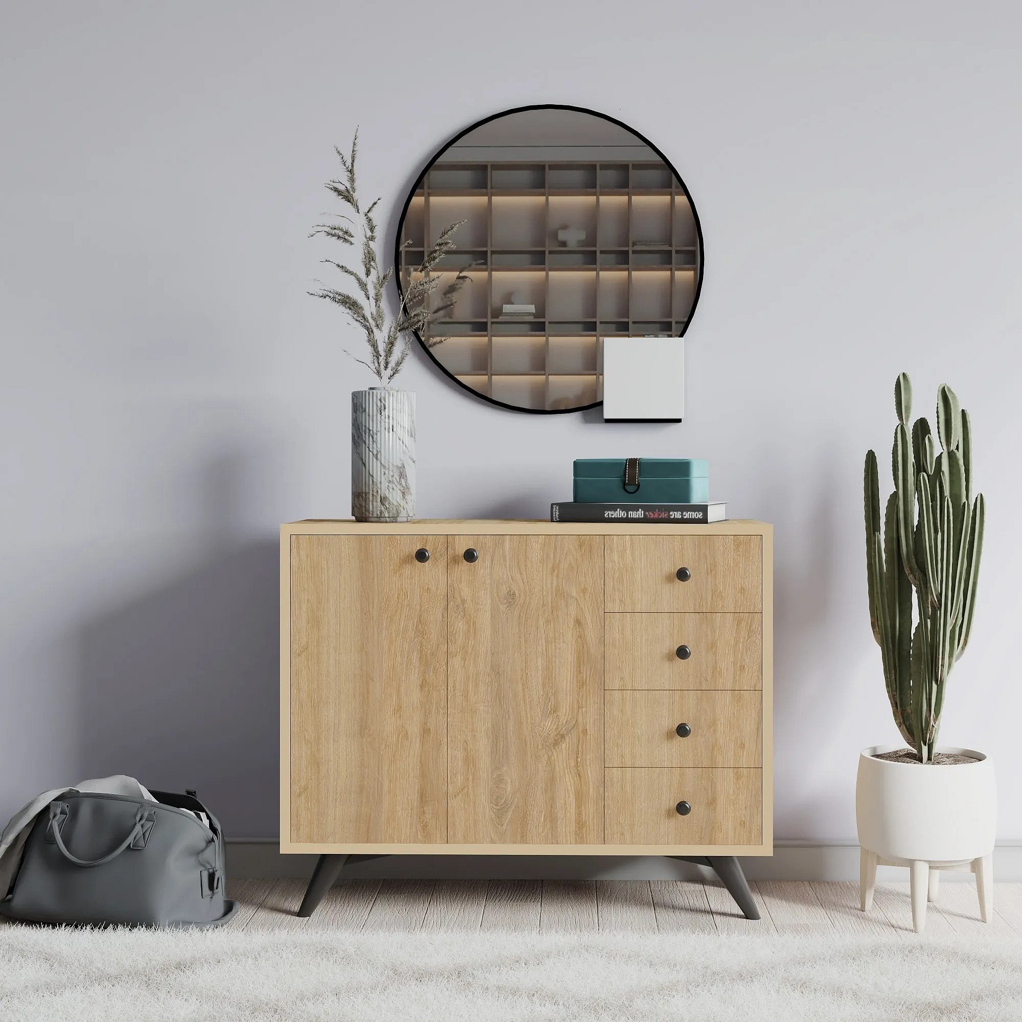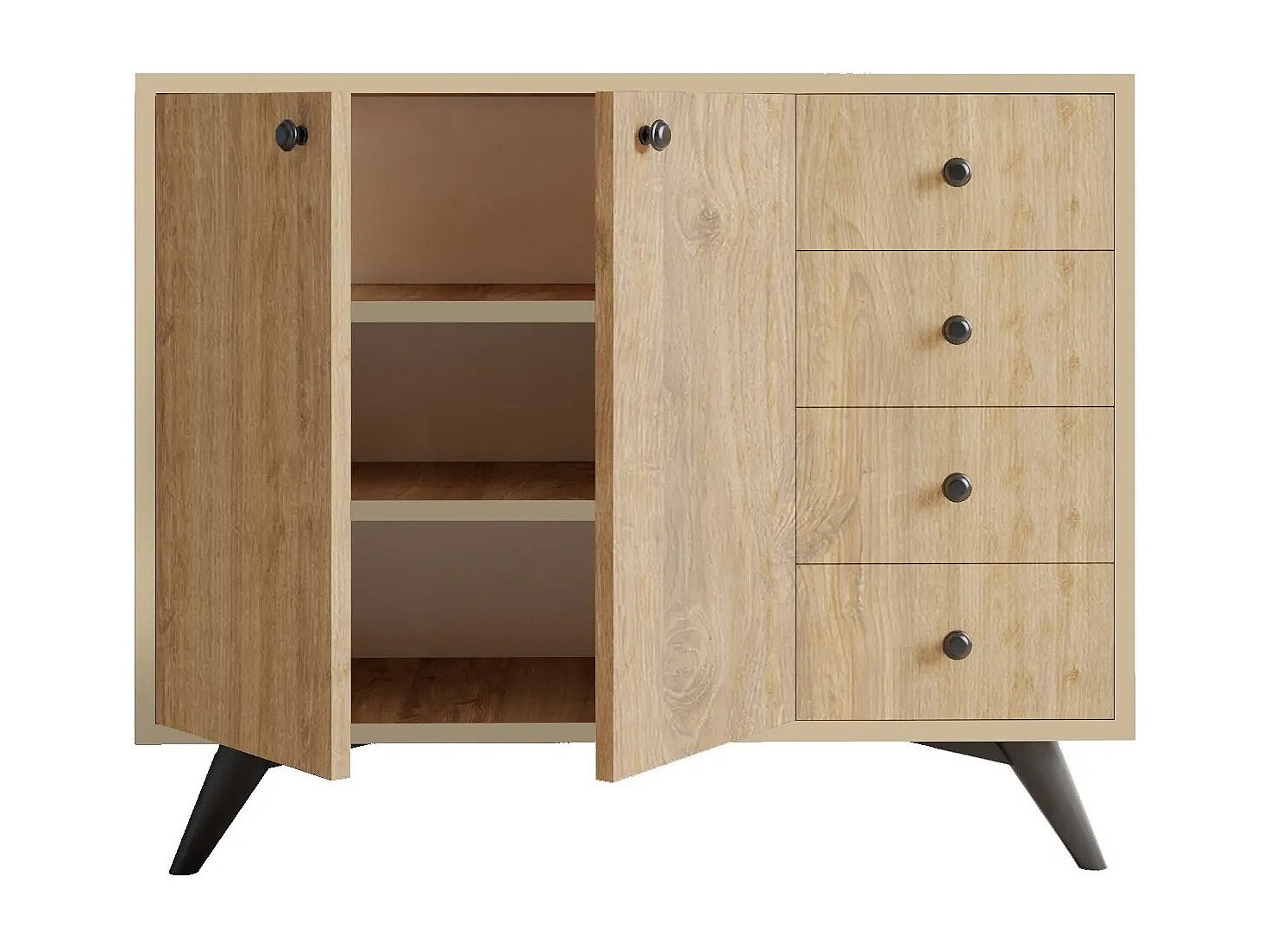 Commode 2 portes 4 tiroirs chêne clair 100cm