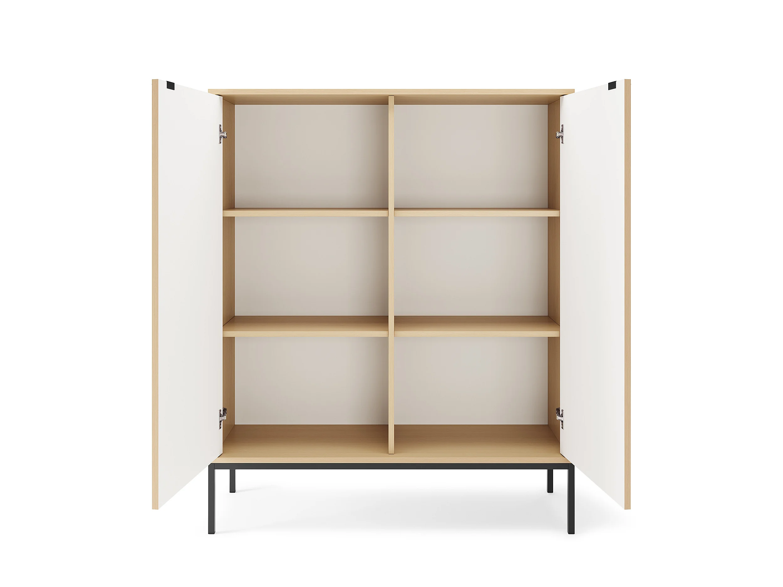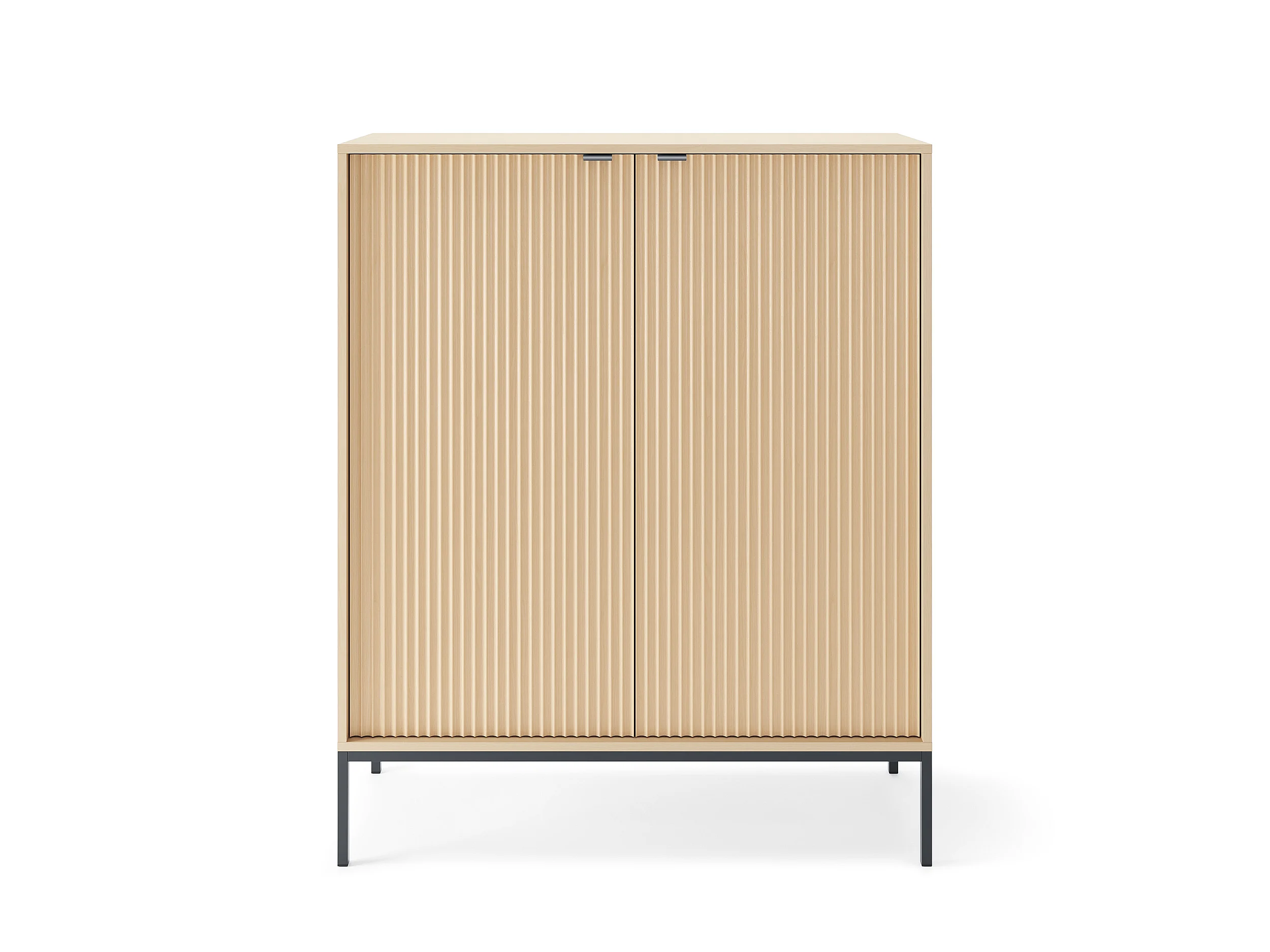 Commode : 2 Portes, chêne Vicenza, Noir, 104 x 125 x 39 cm, poignées Noires