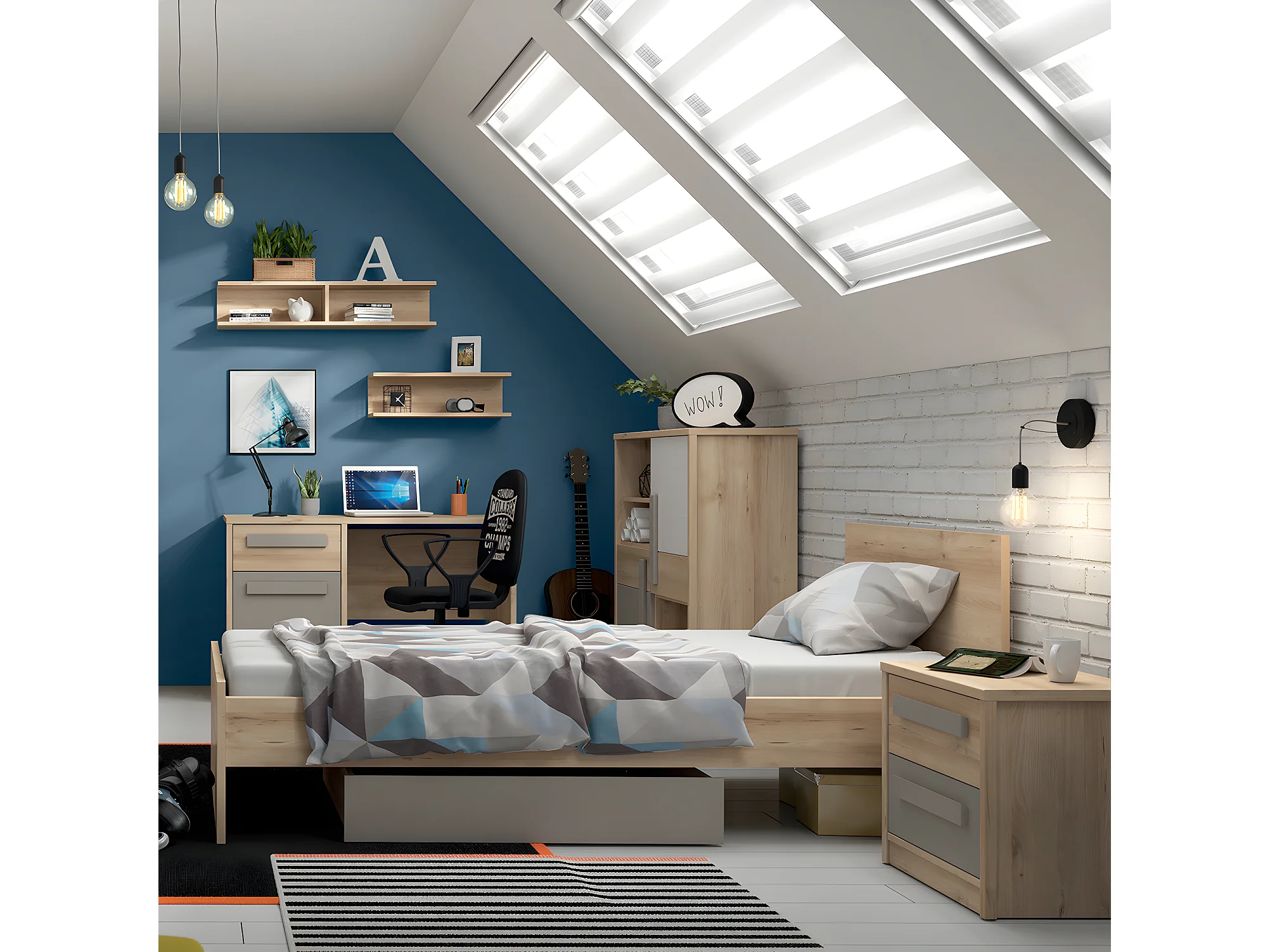 Commode 2 portes Stella Bois Gris et Blanc