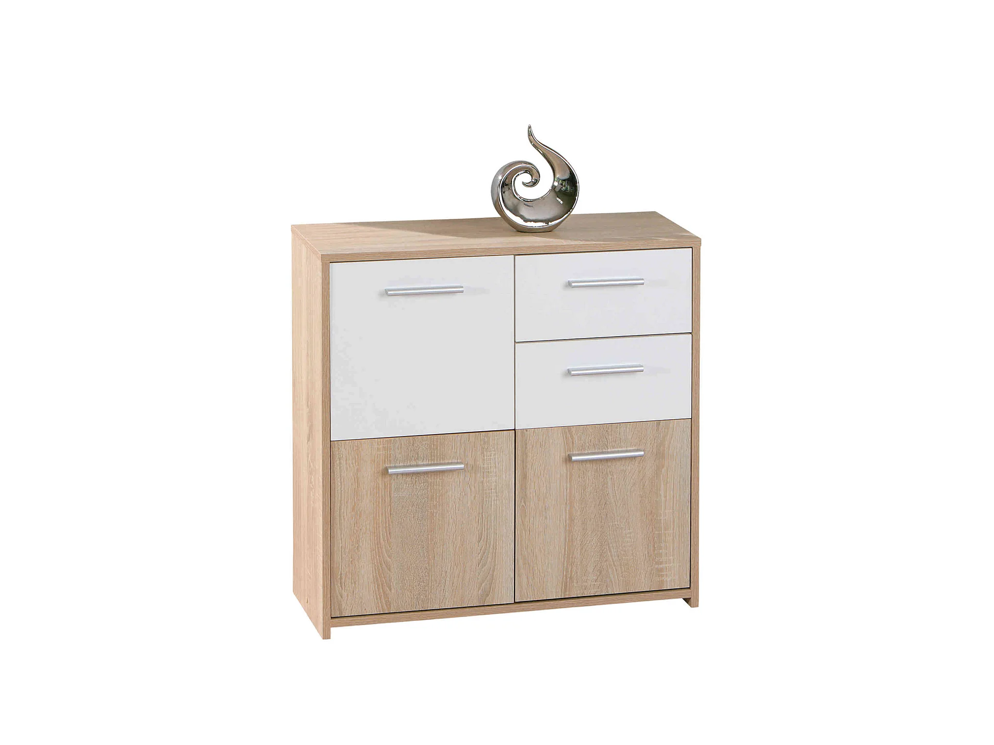 Commode 2 portes 2 tiroirs imitation chêne artisan et blanc brillant - CO13055-1