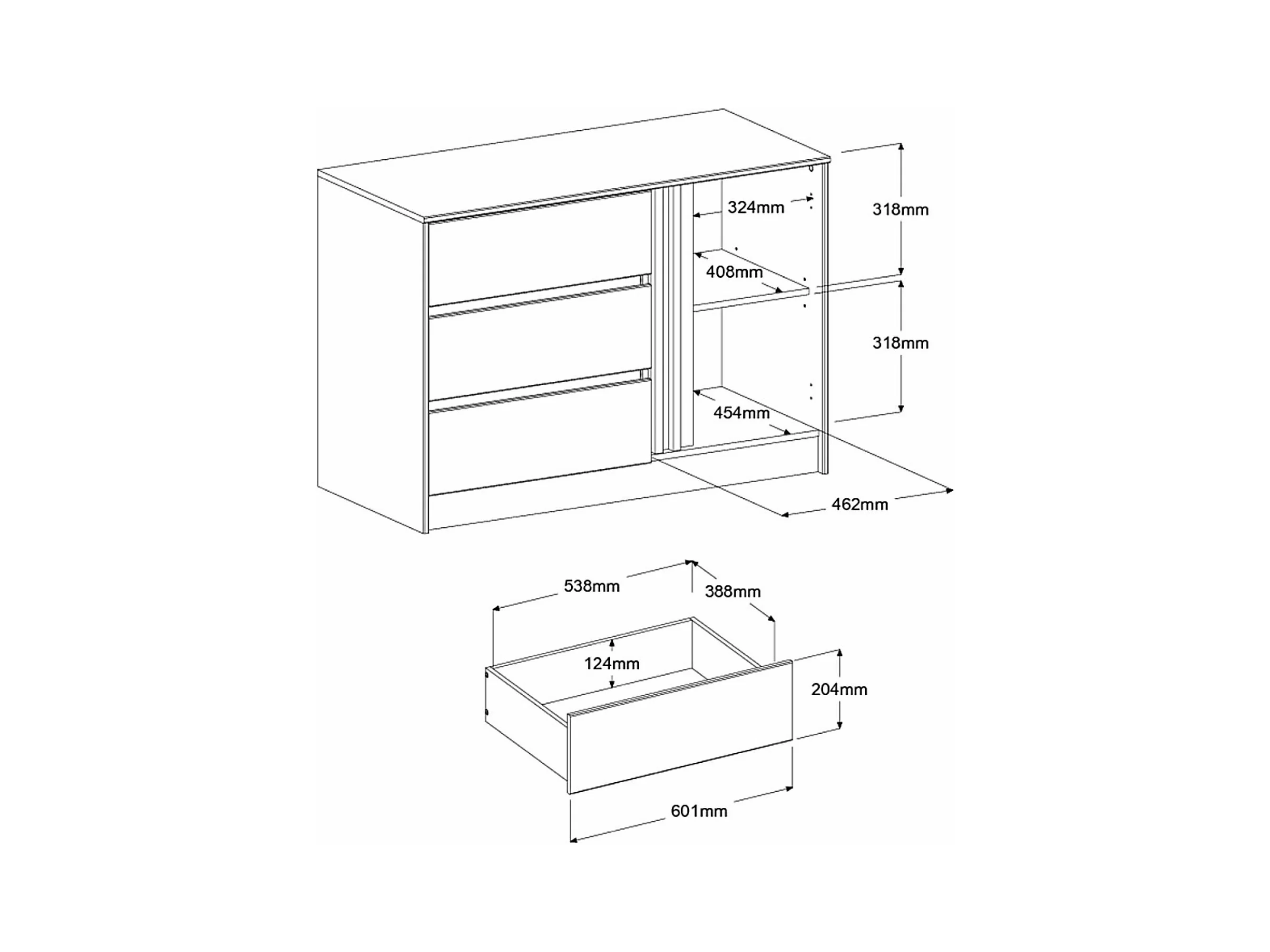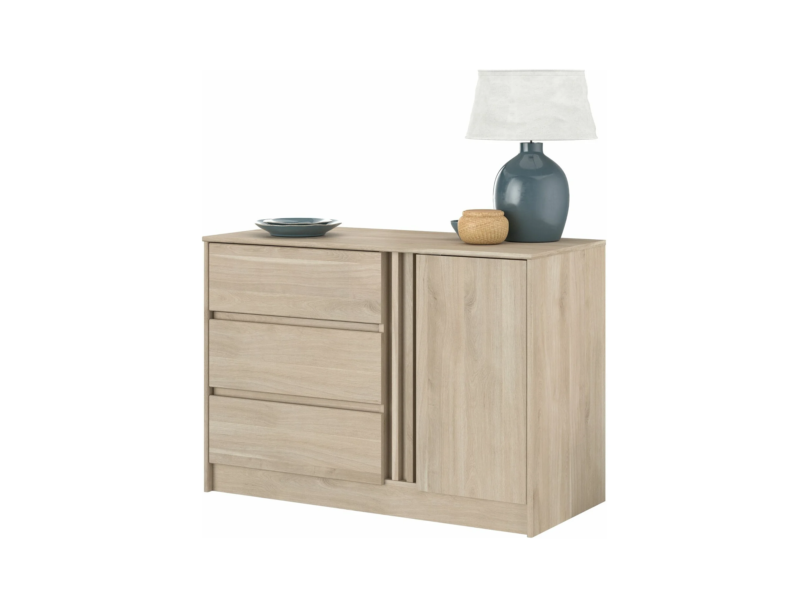 Commode 3 tiroirs 1 porte bois naturel CLEM - CLEM