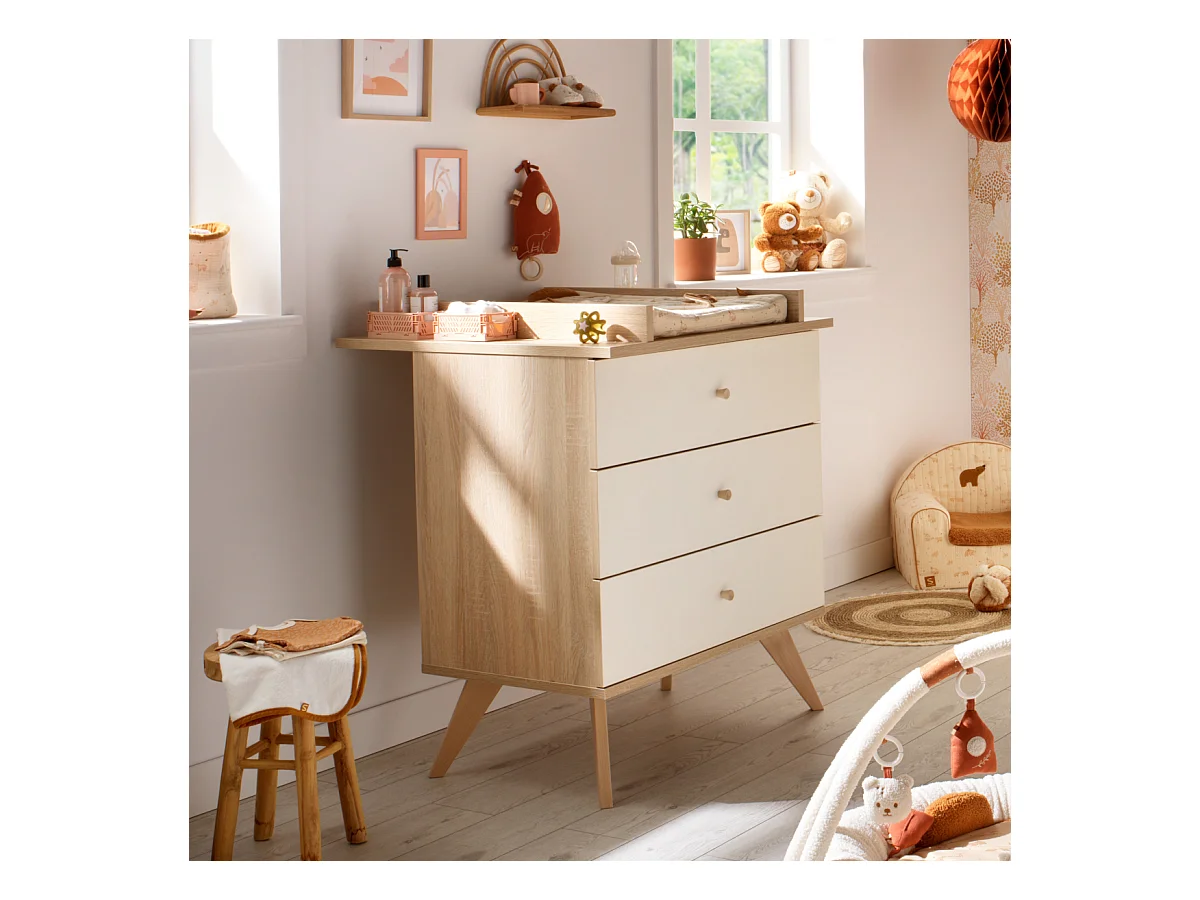 Commode 3 tiroirs avec pieds bois décor vanille CAMILLE - Sauthon