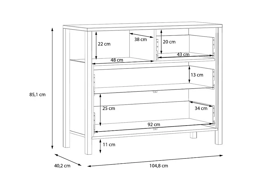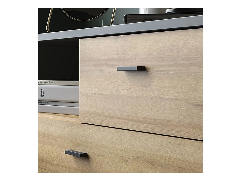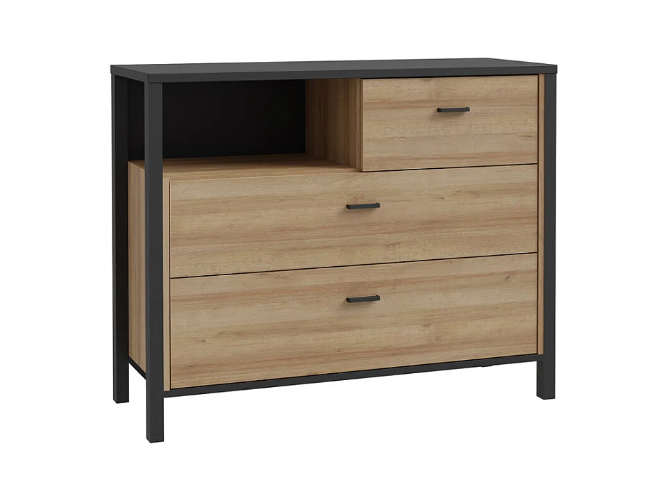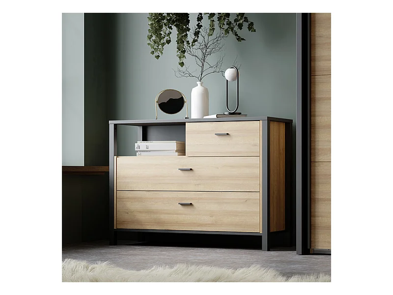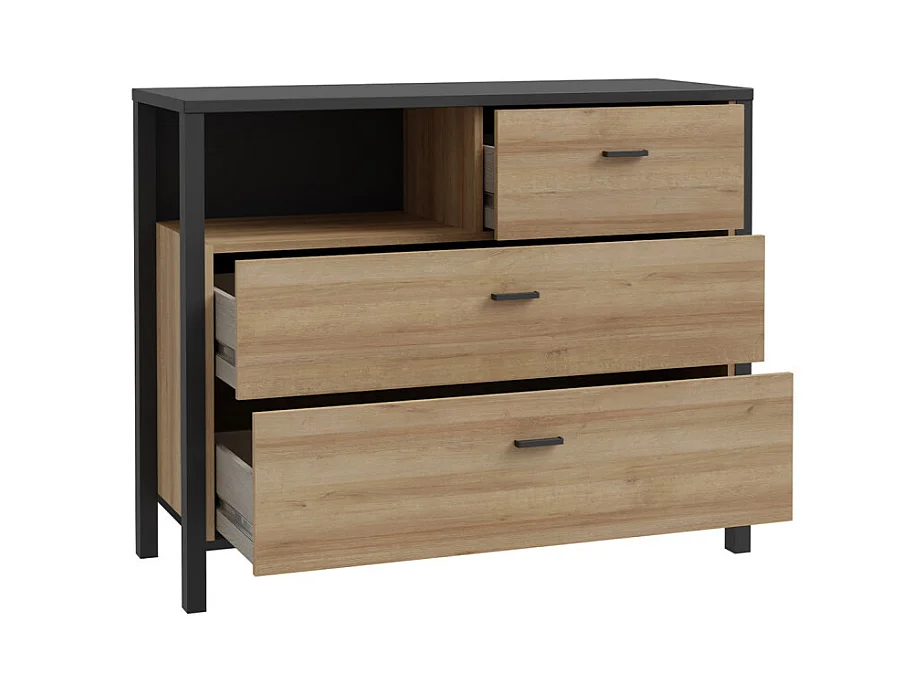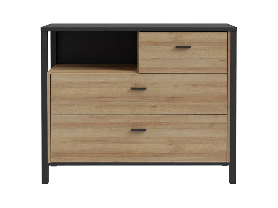 Commode 105 cm 3 tiroirs 1 niche décor bois chêne et noir - MODE