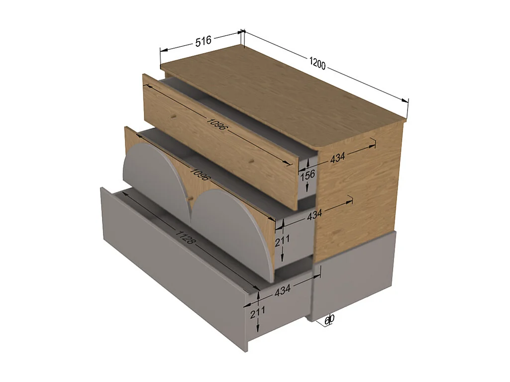 Commode 3 tiroirs Bloom - Cachemire et Bois