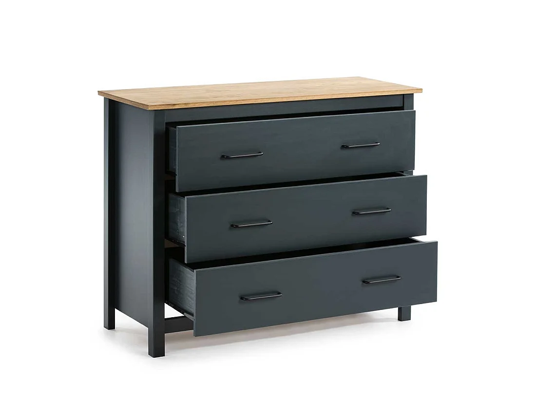 Commode 3 tiroirs Bois/Bleu - DARANMI
