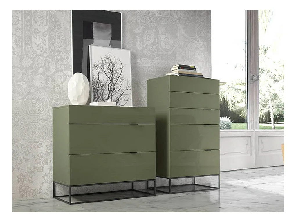 Commode 3 tiroirs bois laqué et acier noir Ciora-Couleur Alto