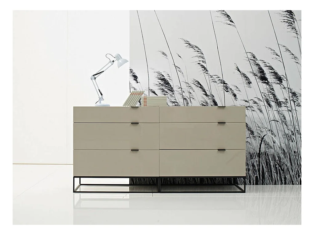 Commode 3 tiroirs bois laqué et acier noir Ciora-Couleur Dune