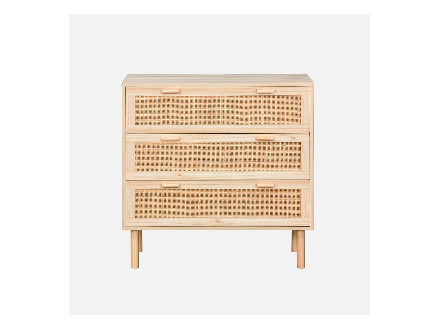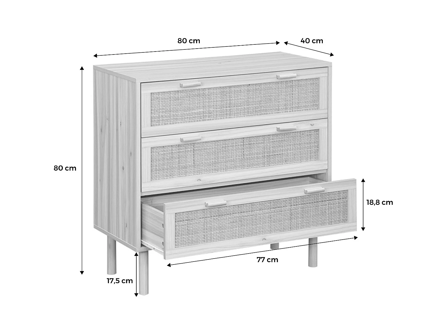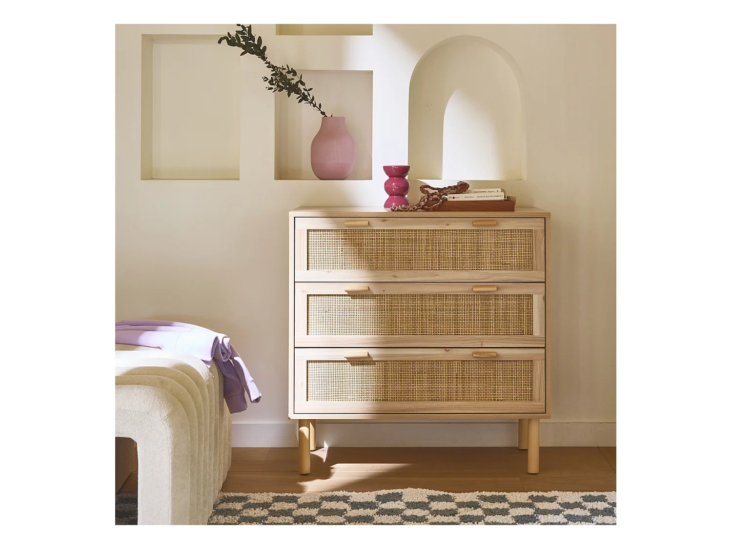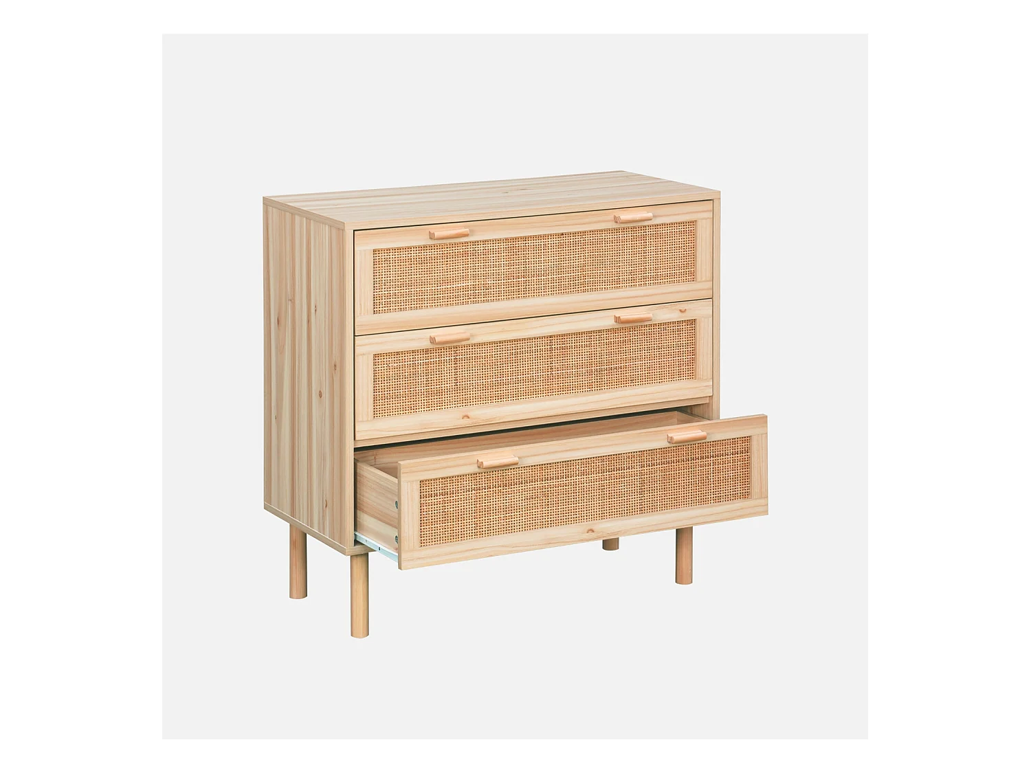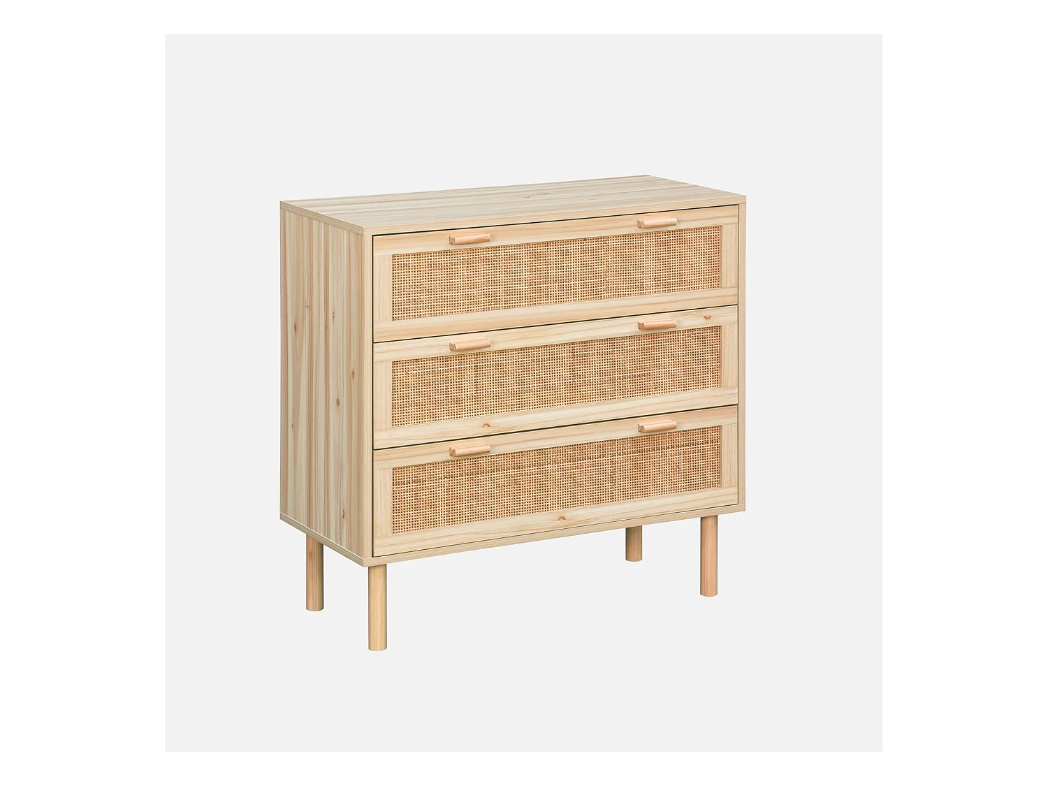 Commode 3 tiroirs cannage et décor bois CAMARGUE L 80 x P 40 x H 80cm
