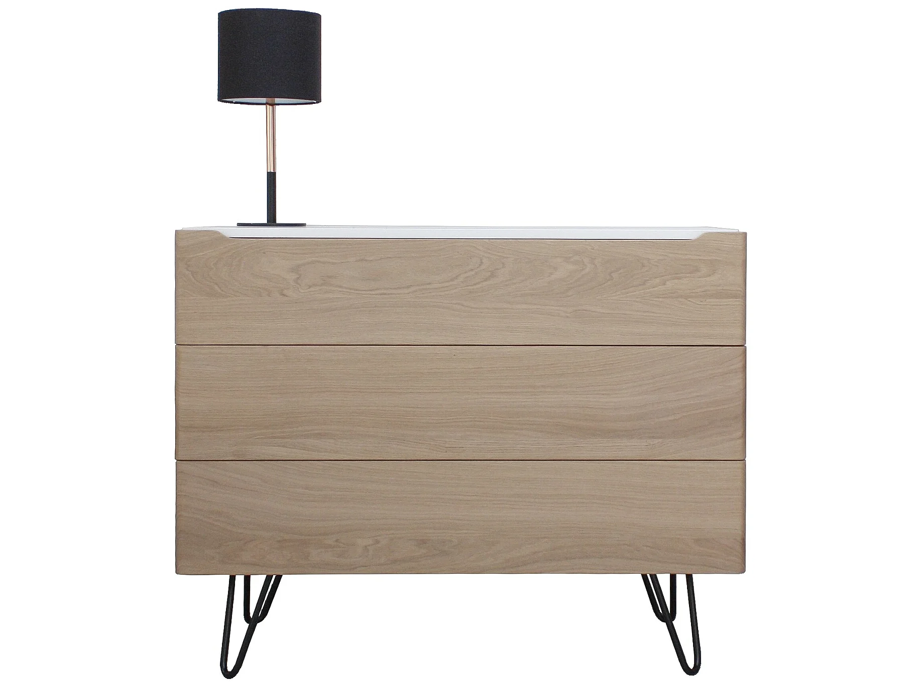 Commode chêne blanchi et laqué blanc, 3 tiroirs - 100L x 46P